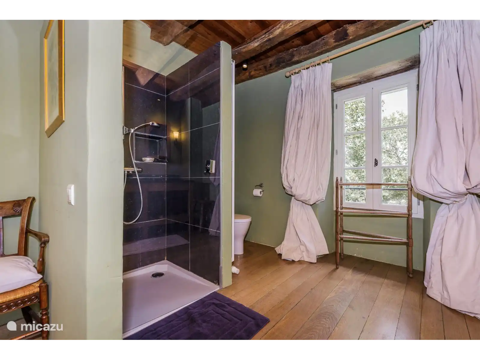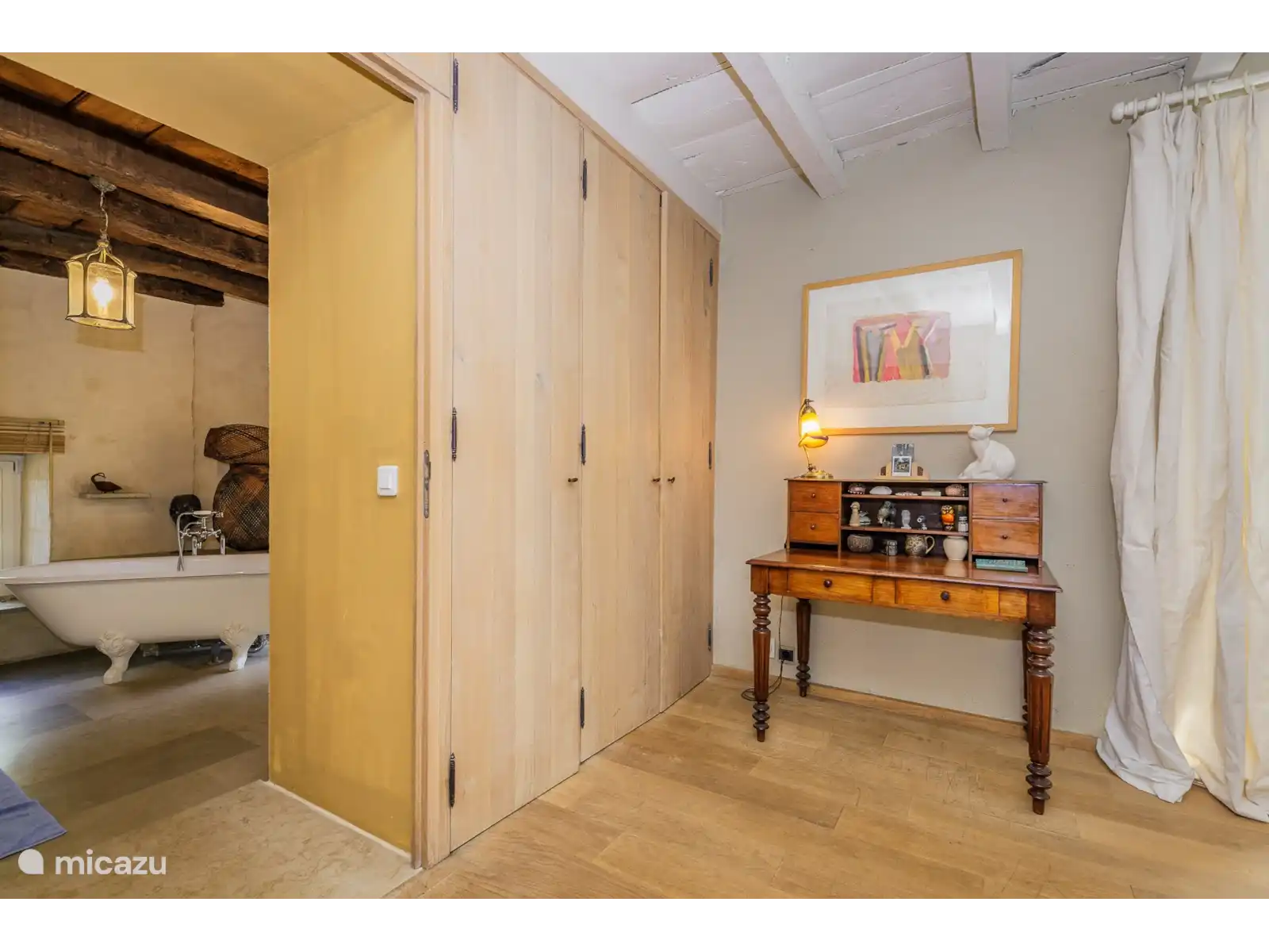 - Dit prachtige gebouw is omgevormd tot een romantisch verblijf. Op de begane grond vindt u thee- en koffiefaciliteit, een kleine koelkast en badkamer met douche / wc. Op de 1e verdieping is een tweepersoonsslaapkamer met een prachtige hoge eikenbalkenplafond.