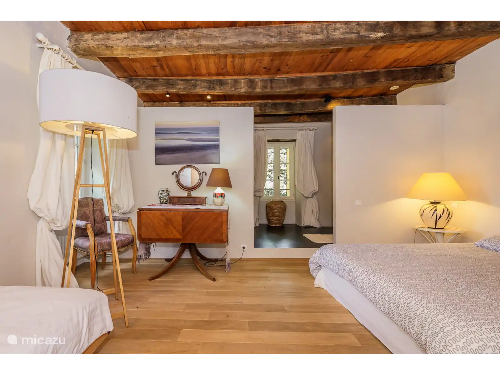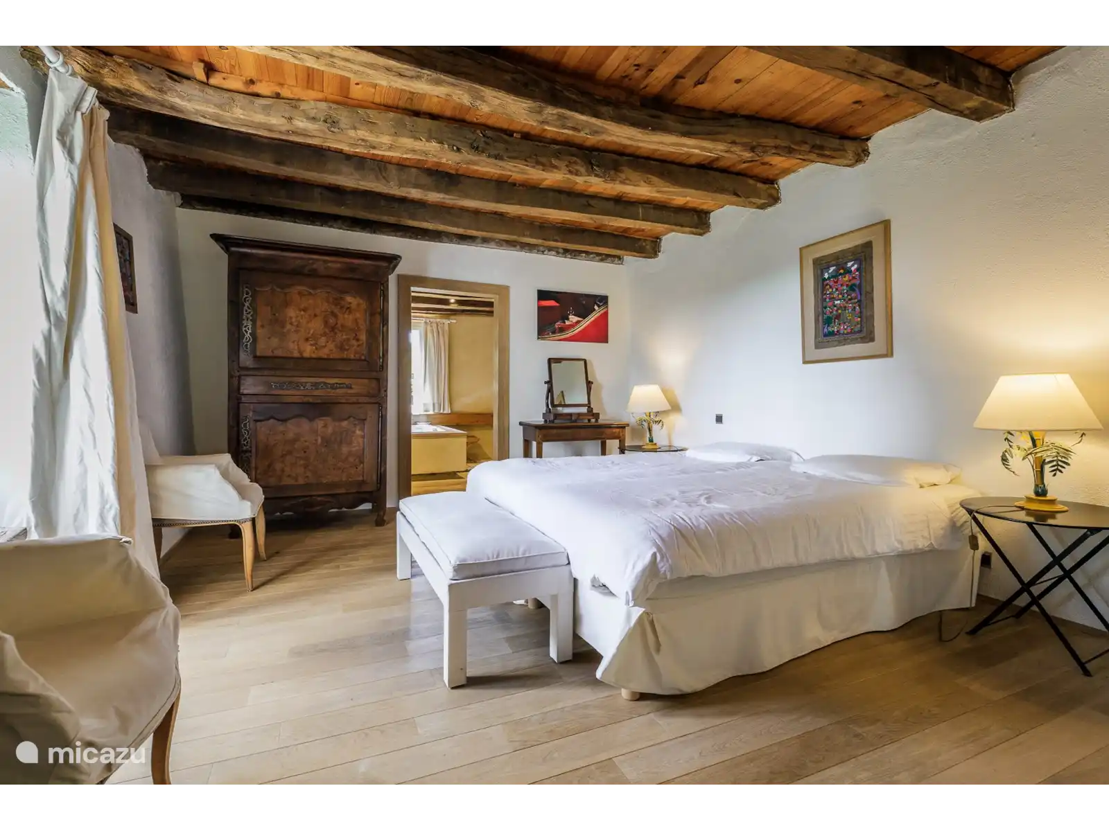 - De vijfde slaapkamer heeft een tweepersoonsbed en een eenpersoonsbed met en-suite douche / dubbele wastafel / wc.