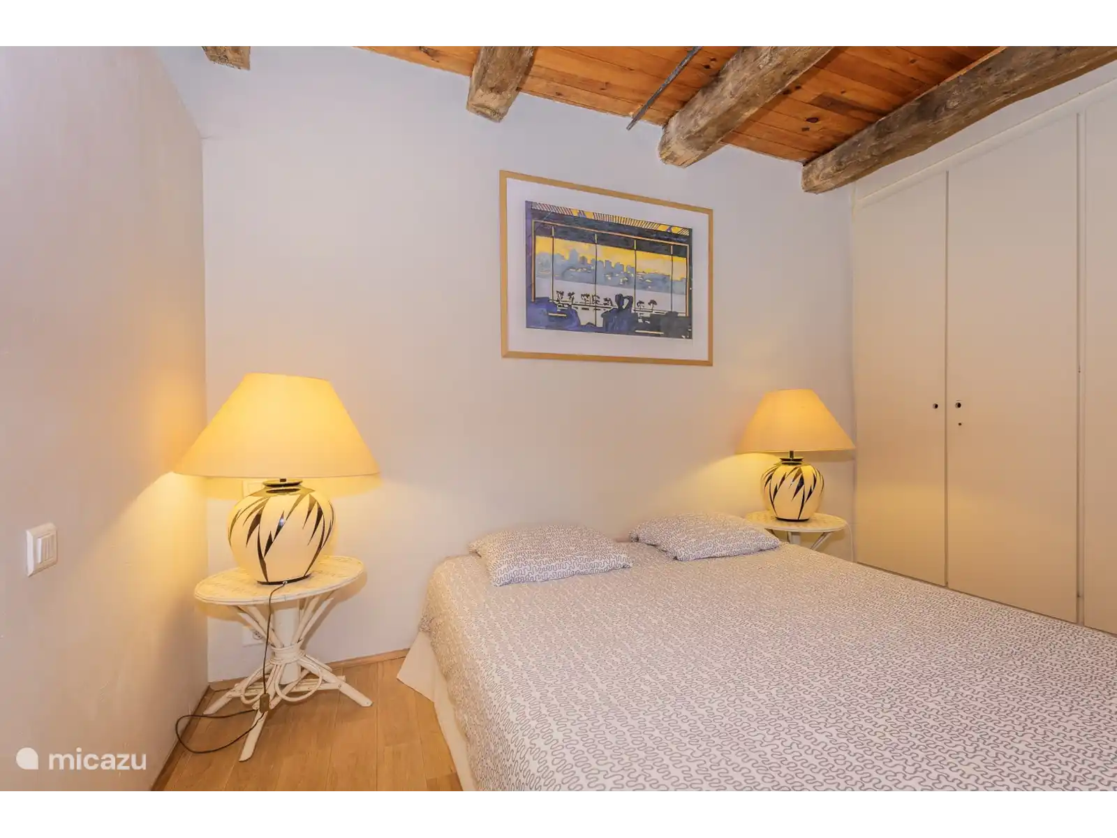 - Een grote slaapkamer met veel bergruimte, een luxe en-suite badkamer. De slaapkamer heeft openslaande deuren naar het betegelde terras.