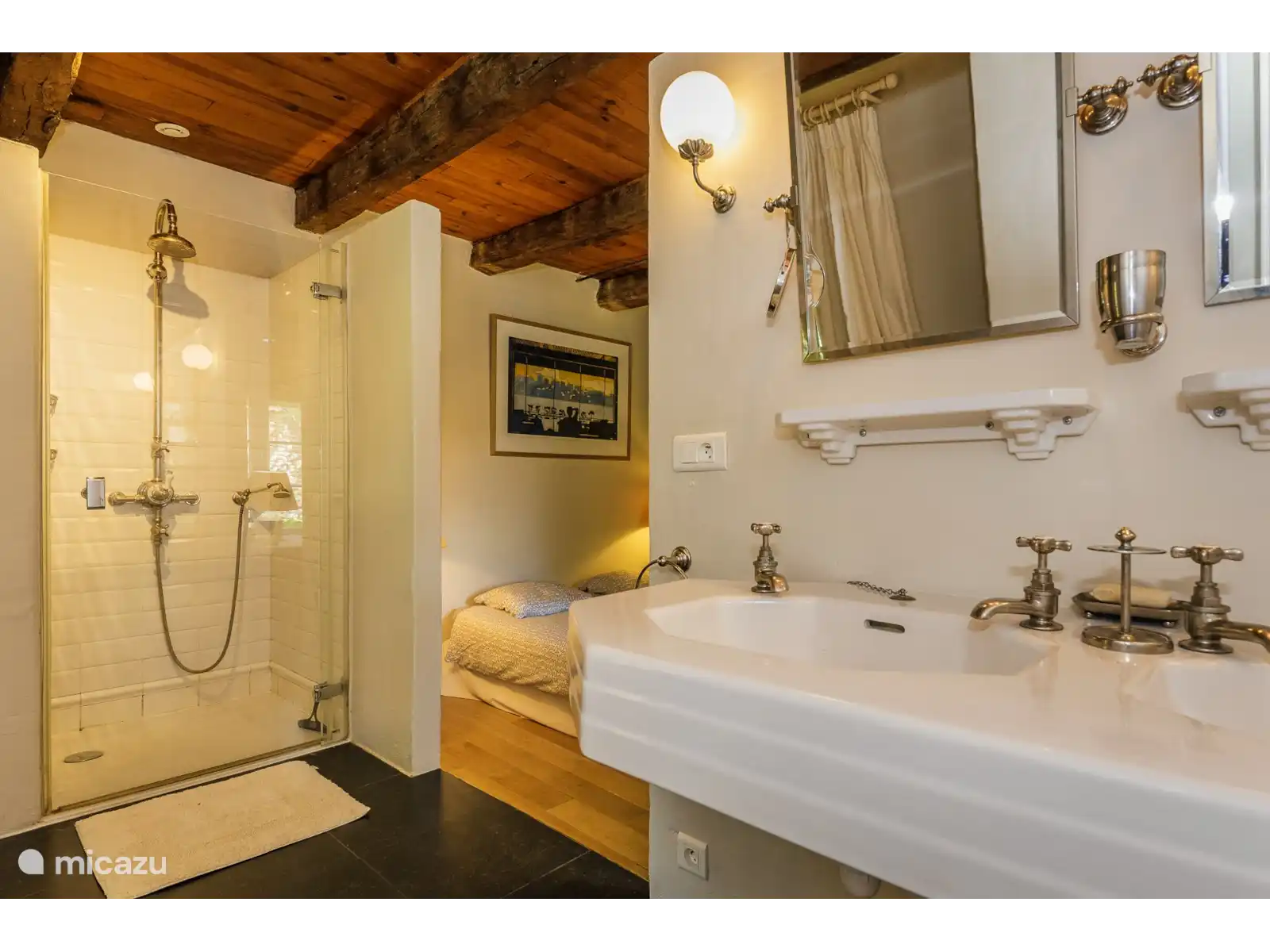 - Een vierde slaapkamer heeft een tweepersoonsbed met en-suite douche / dubbele wastafel / wc.