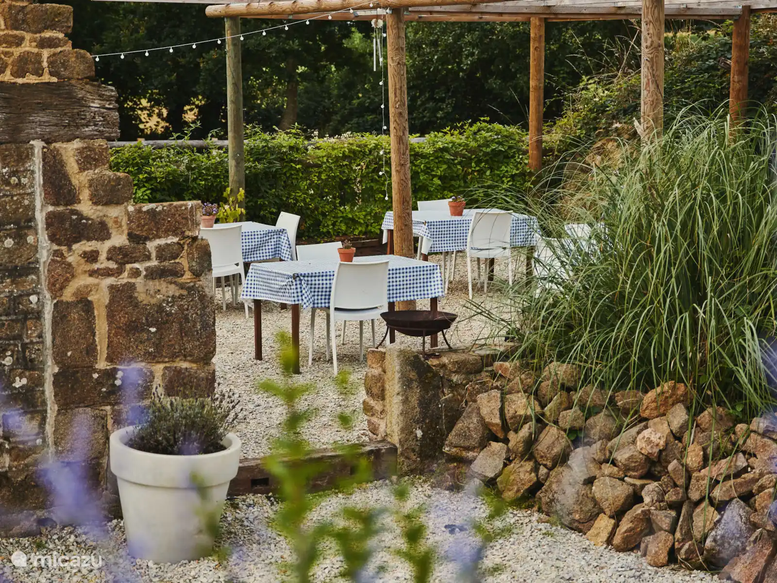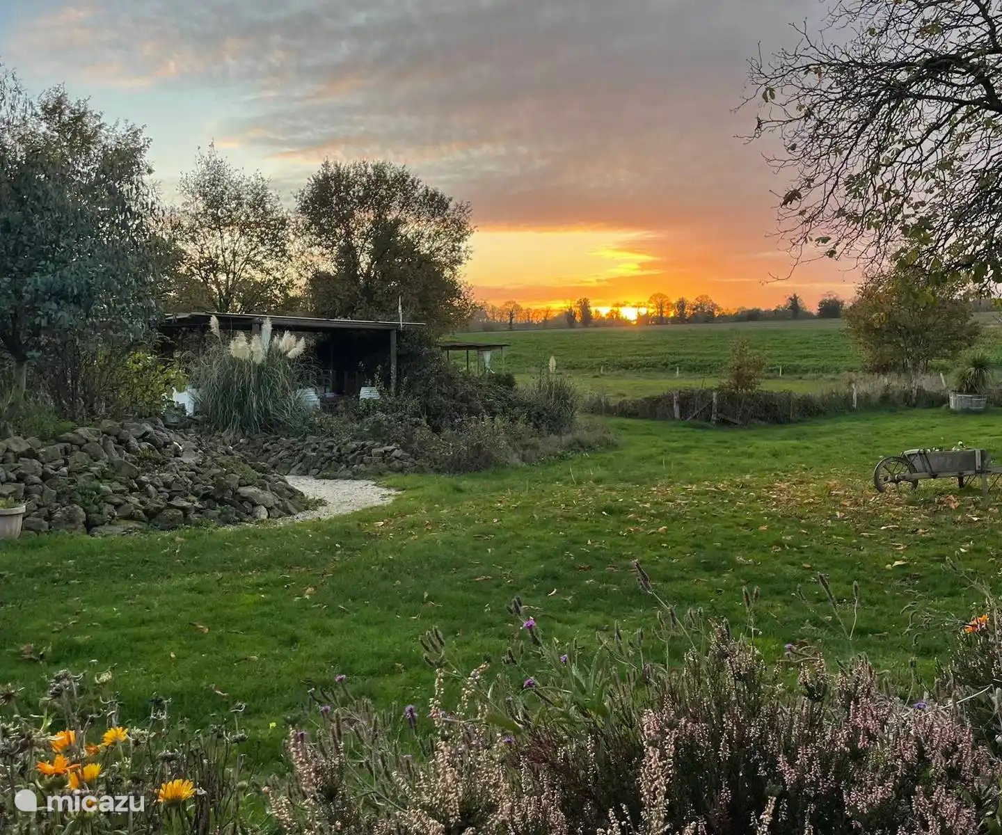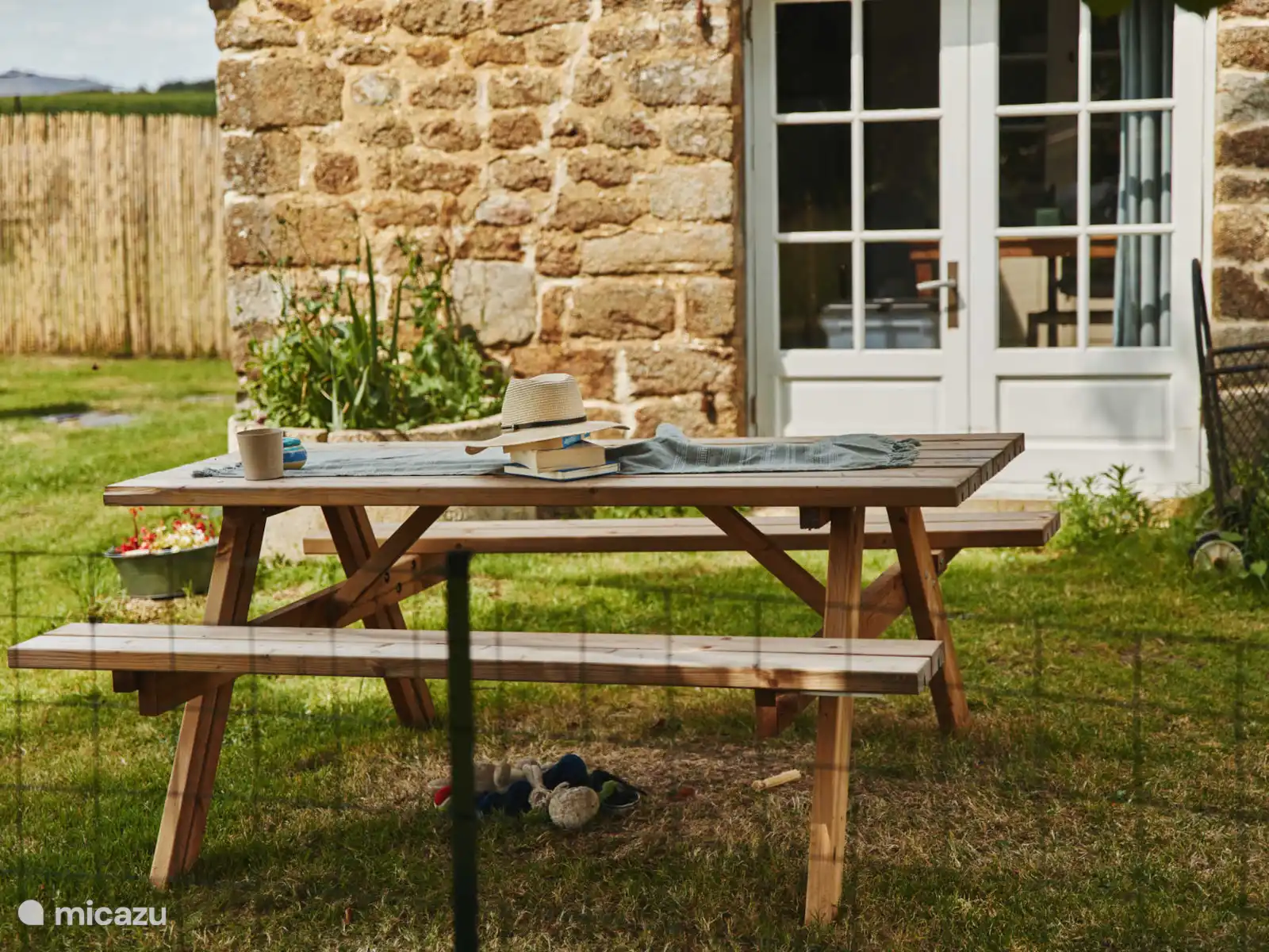De tuin is volledig omheind en je hebt er een prachtig weids uitzicht. Er staat een gezellige picknicktafel en er zijn 2 heerlijke relaxte stoelen.