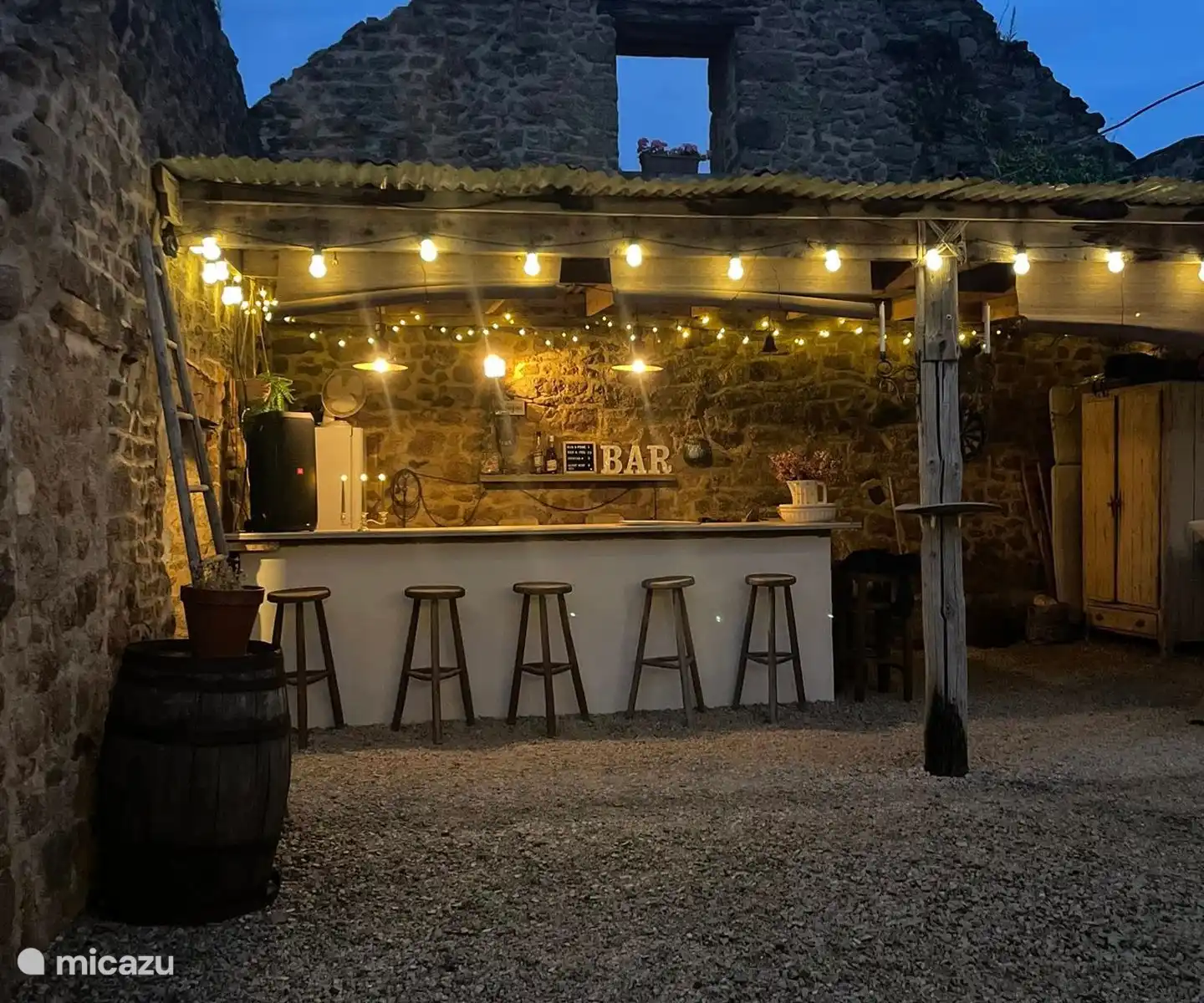Toen we de geweldige ruïne voor het eerst zagen was het meteen duidelijk: dat wordt een terras met buitenbar. En zo geschiedde. De bar ligt naast het omheinde hondenspeelveld. Dus terwijl je hond plezier maakt kun je zelf genieten van een hapje of drankje.