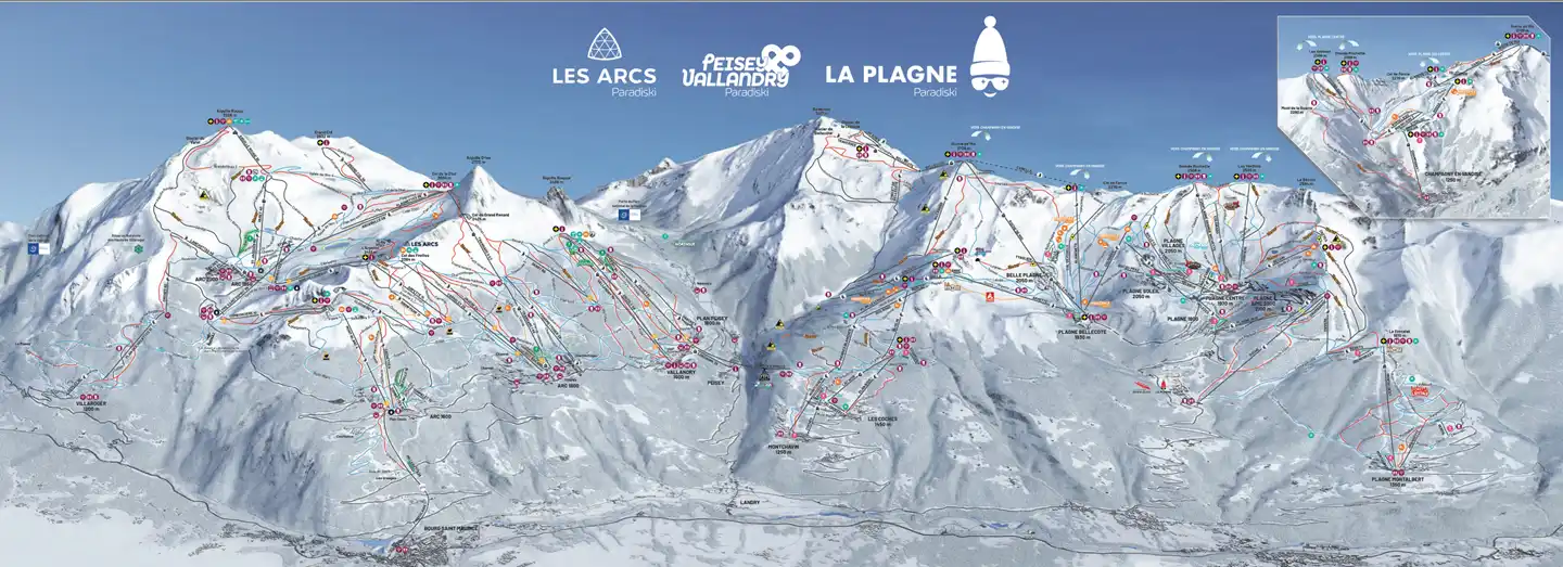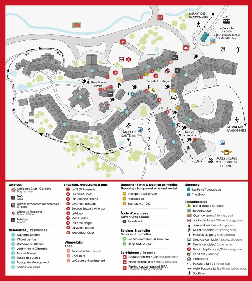 Het dorp Arc 1950 is zeer sfeervol, geheel auto-vrij en biedt een uitzonderlijke directe « ski-in / ski-out » toegang tot het Paradiski ski-gebied, wat met 425 km het twee-na grootste ski-gebied in de wereld is. Het gebied, bestaande uit Les Arcs, Peisey-Vallandry en La Plagne (via de Vanoise Express), biedt exceptionele sneeuw-condities met een totaal van 258 pistes. Met 70% van de piste boven de 2000m is het gebied uiterst sneeuw-zeker.