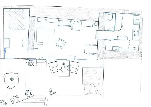 Er is nog een tweede terras (gras) voor u beschikbaar, waar u in de schaduw van enkele bomen kunt zitten wanneer het eventueel te warm zou zijn.U kunt hier heerlijk genieten in de relax-fauteauils met mooi zicht op het groen.