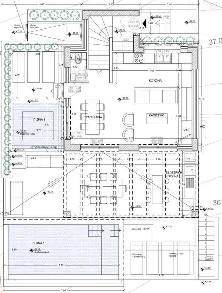 • Onder de waterdichte Pergola kan U heerlijk buiten eten in de schaduw en de koelte van een ventilator of genieten van een hapje en een drankje aan de bar naast de buitenkeuken met ruime barbecue en houtgestookte pizza-oven.