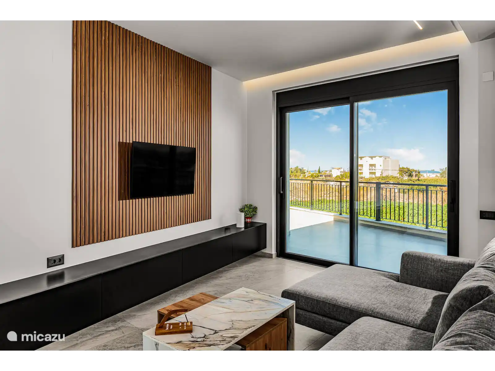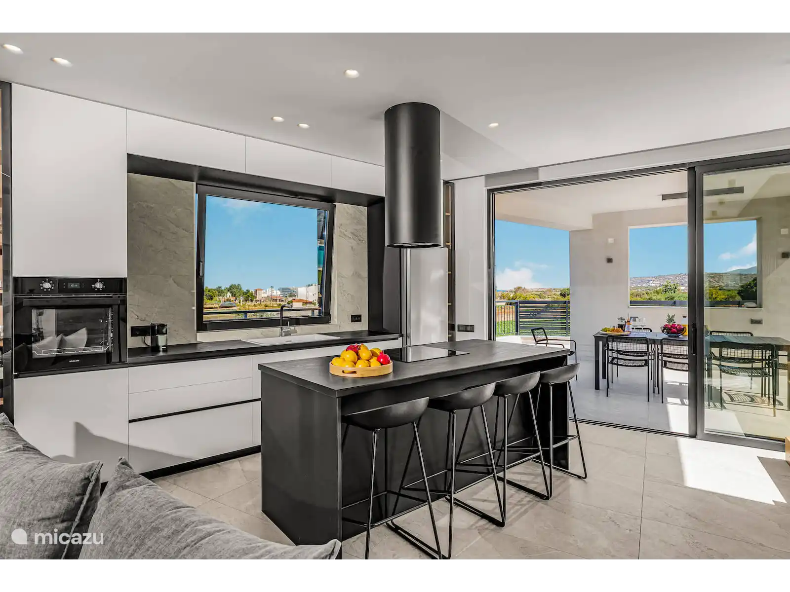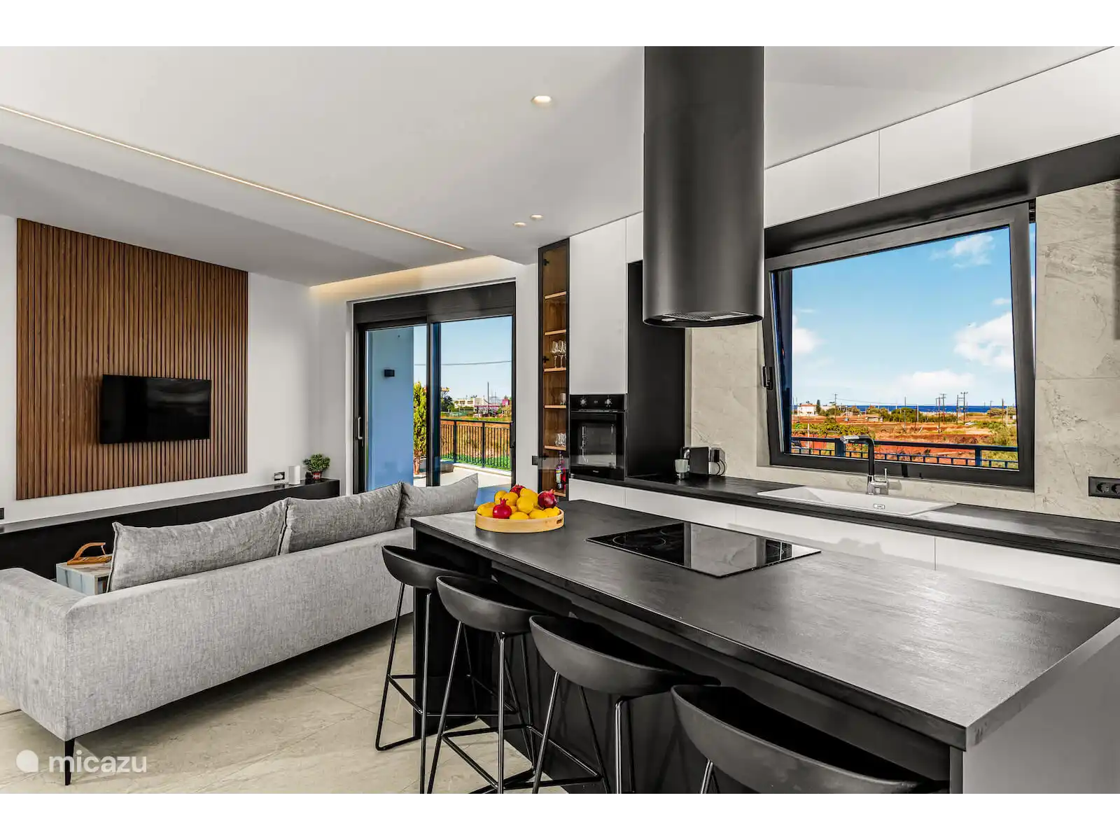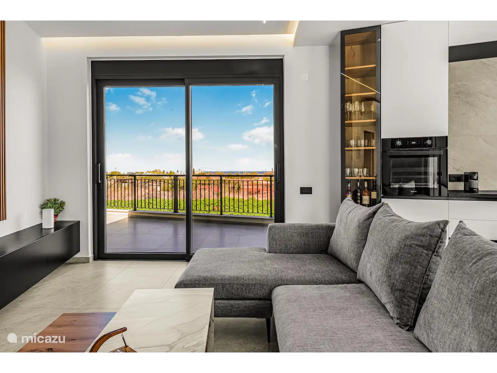 De volledig uitgeruste moderne keuken is uitgerust met hoogwaardige apparaten, waaronder een Bosch-oven, koelkast en vaatwasser, evenals een waterkoker, wasmachine en strijkfaciliteiten—perfect voor zowel korte verblijven als langere vakanties. De uitnodigende woonkamer beschikt over een comfortabele bank, Samsung-tv, snel internet, terwijl twee slaapkamers ook zijn uitgerust met tv's.