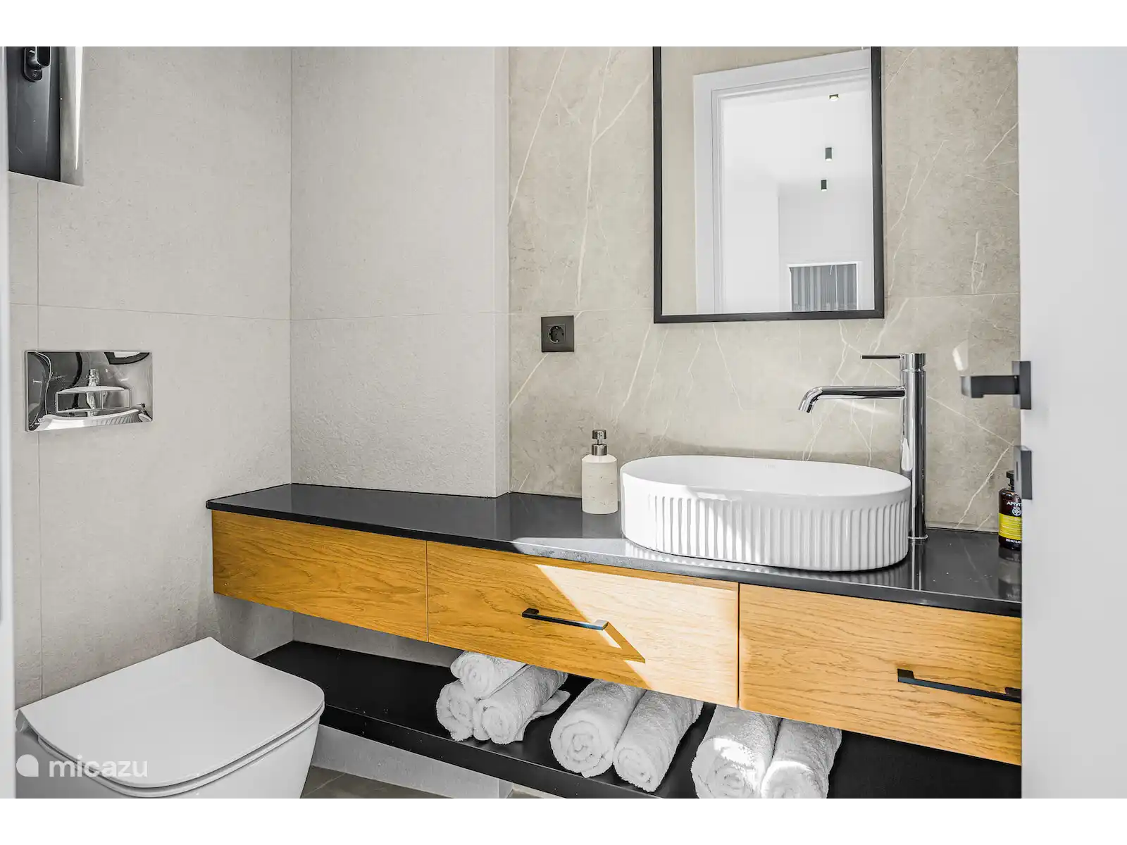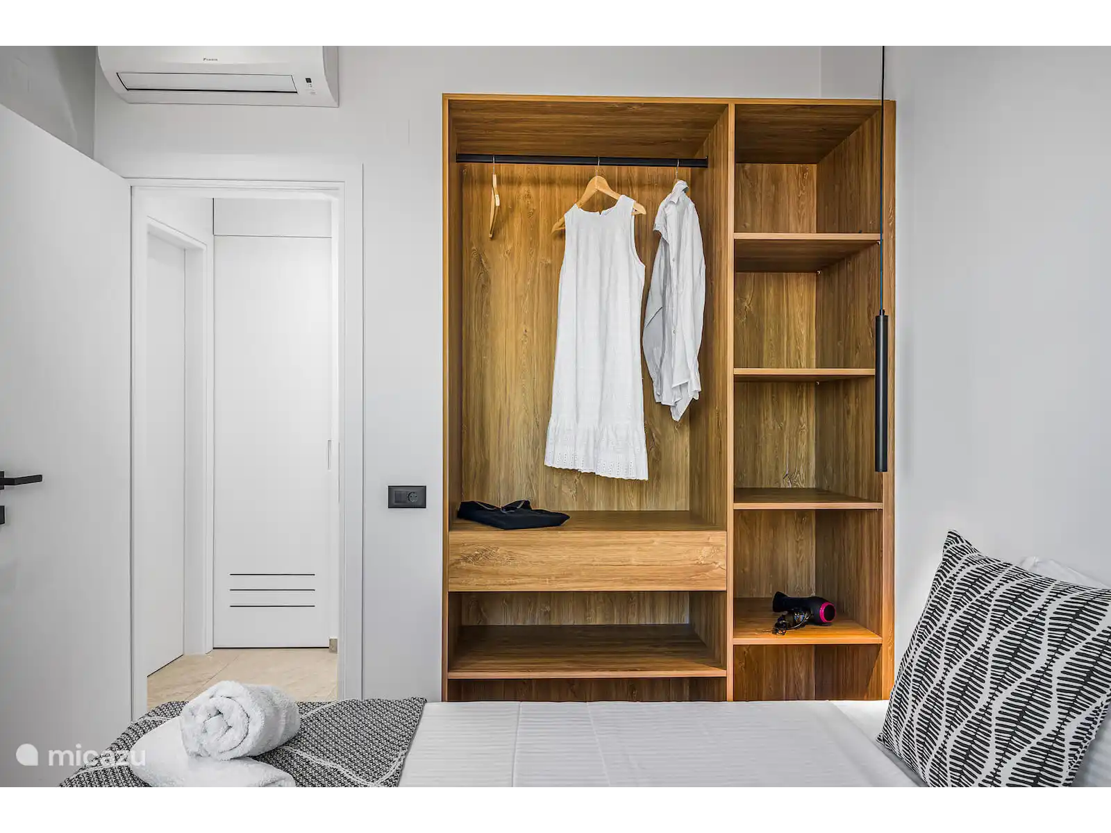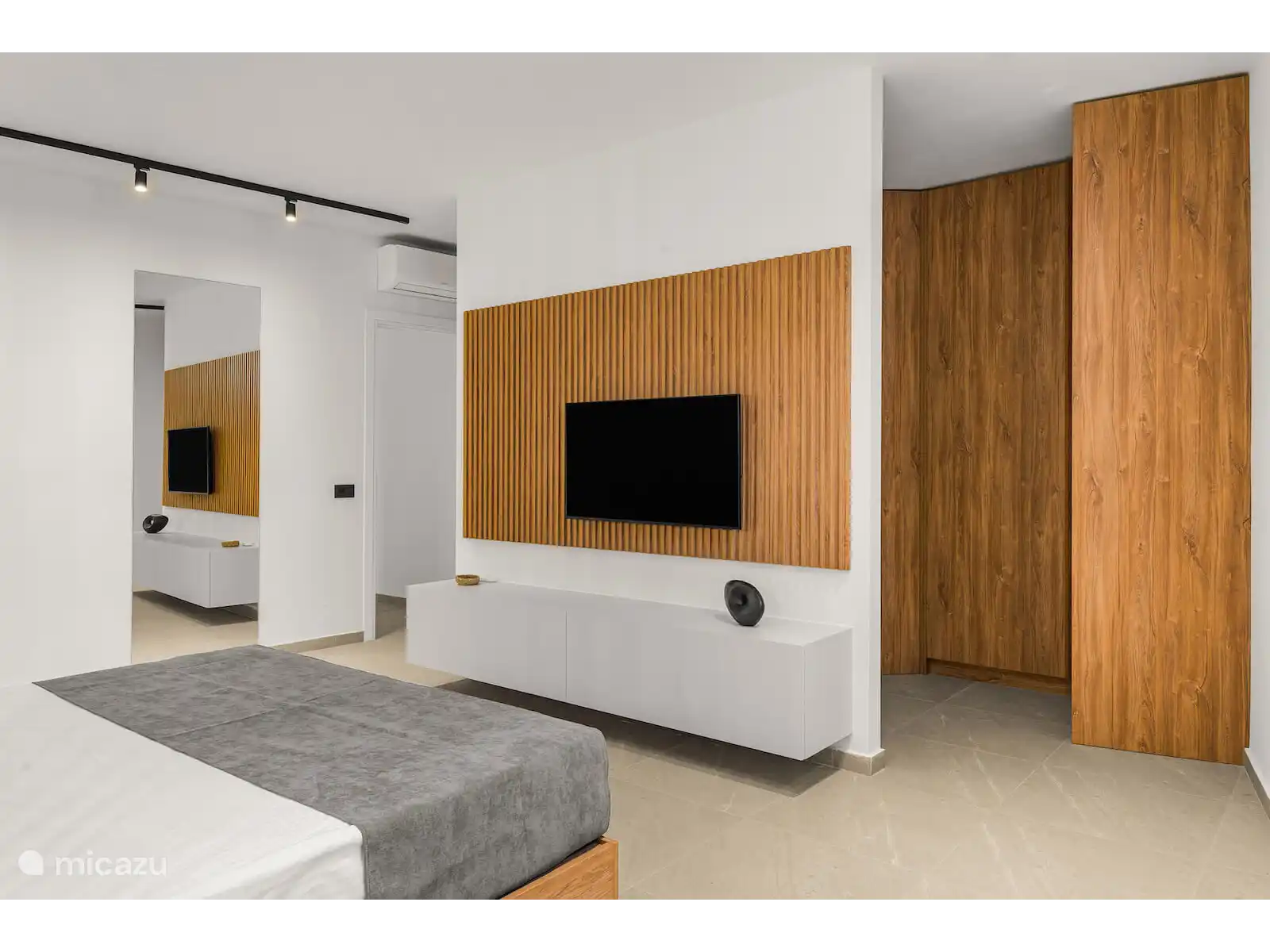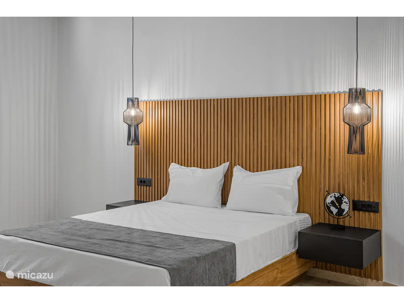 De volledig uitgeruste moderne keuken is uitgerust met hoogwaardige apparaten, waaronder een Bosch-oven, koelkast en vaatwasser, evenals een waterkoker, wasmachine en strijkfaciliteiten—perfect voor zowel korte verblijven als langere vakanties. De uitnodigende woonkamer beschikt over een comfortabele bank, Samsung-tv, snel internet, terwijl twee slaapkamers ook zijn uitgerust met tv's.