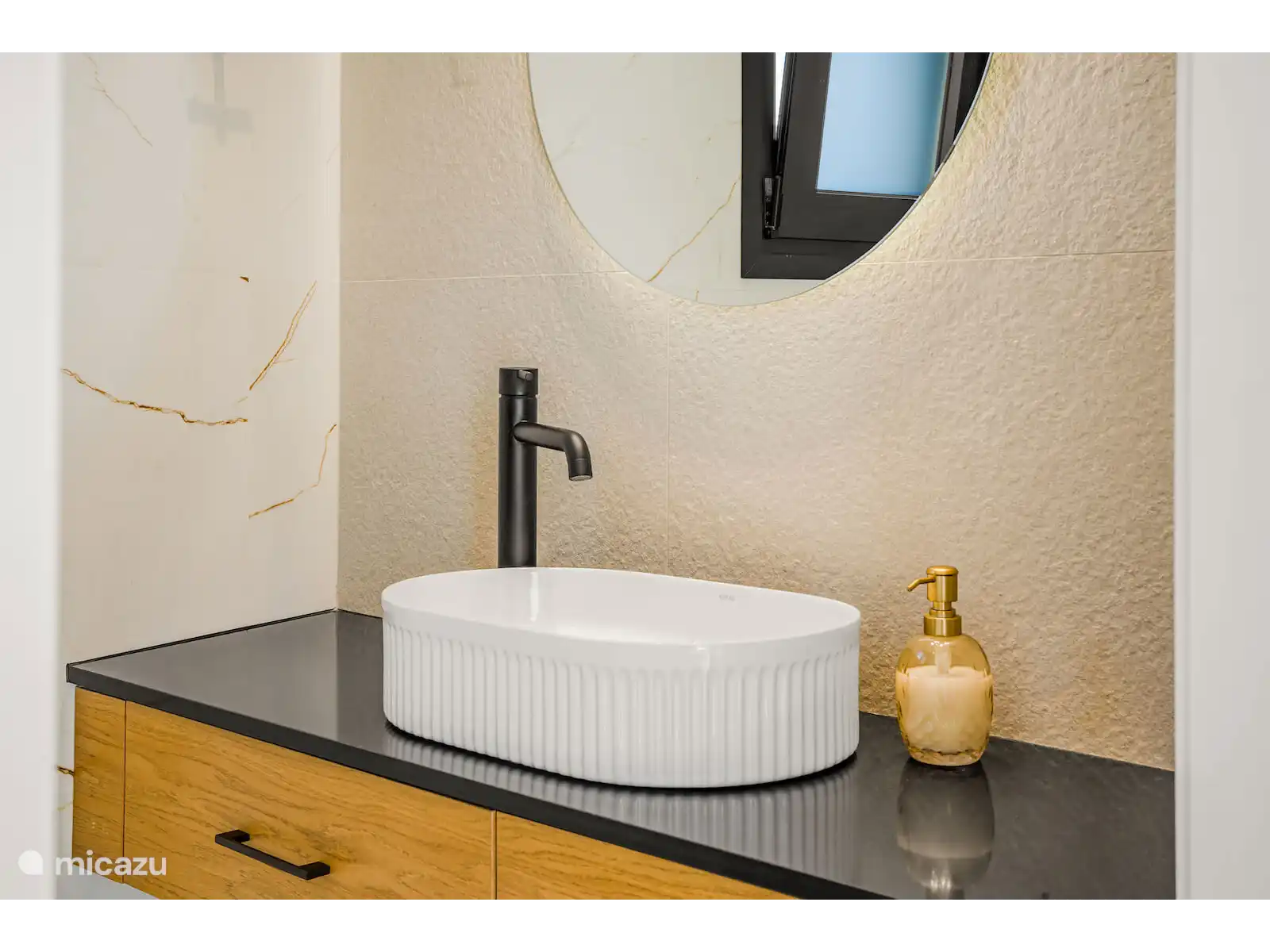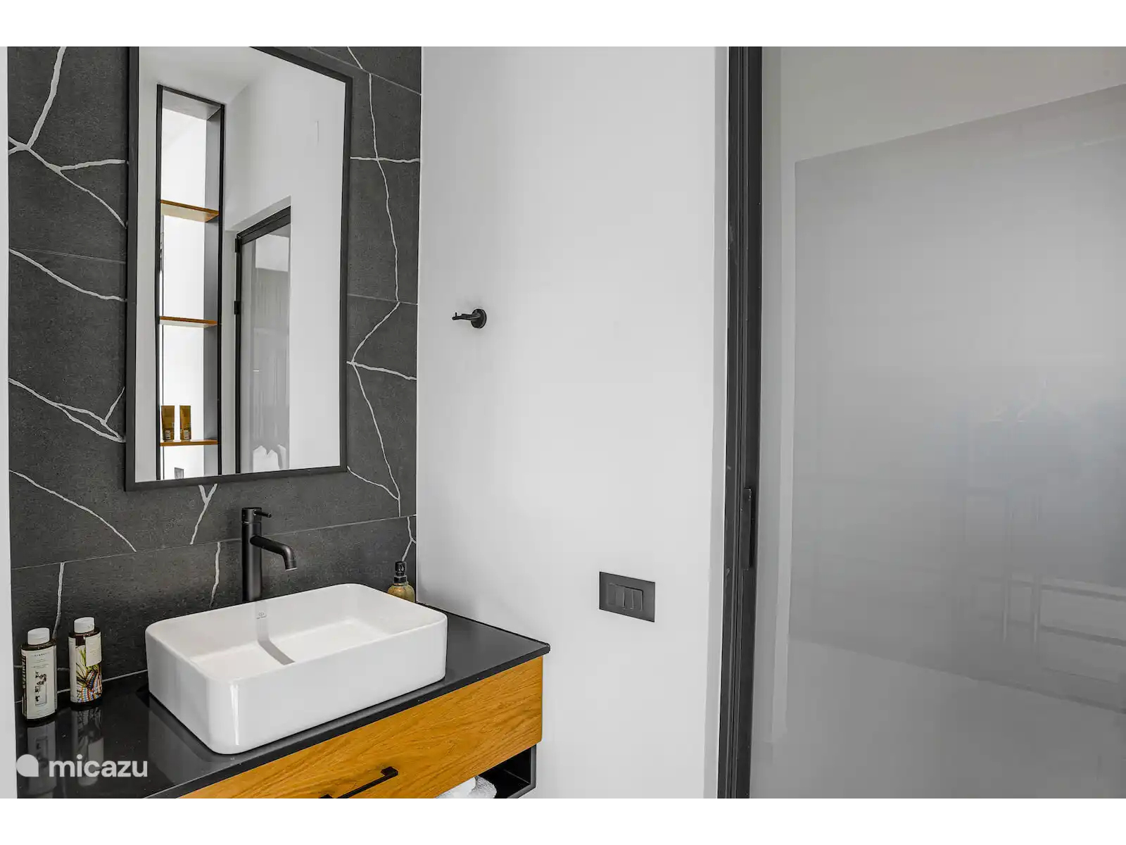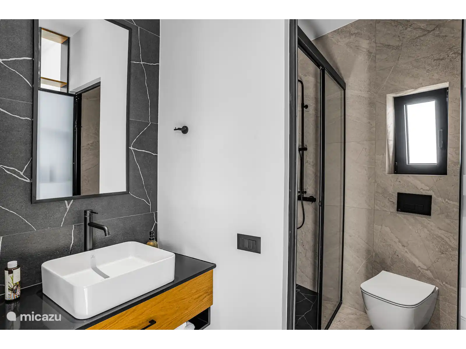 Twee slaapkamers komen uit op privébalkons met een prachtig uitzicht, waarvan er één ook door een groot raam uitzicht op de bergen heeft. Een andere slaapkamer heeft een groot panoramaraam met ononderbroken zeezicht, waardoor de villa de hele dag door wordt gevuld met natuurlijk licht en een serene sfeer.