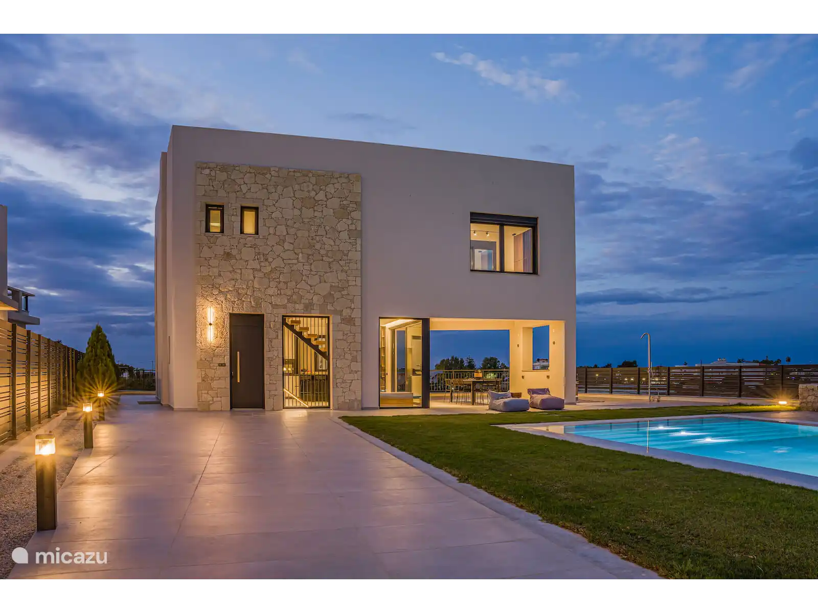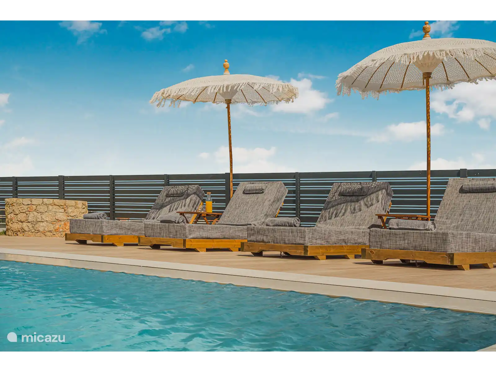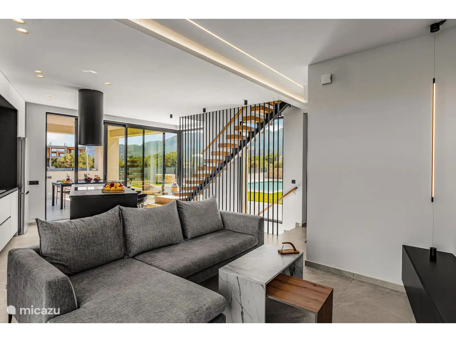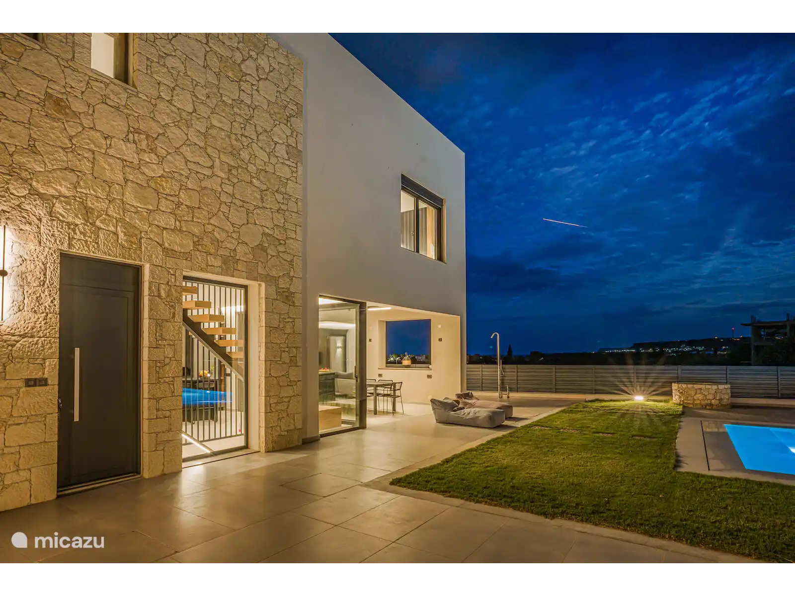 Stap naar buiten naar je privézwembad van 40 m², omringd door ligstoelen en een ruime terras. Het buitenterras biedt een grote eettafel met plaats voor maximaal 12 gasten, ideaal voor maaltijden in de buitenlucht terwijl je geniet van panoramisch zeezicht en gedenkwaardige zonsondergangen.