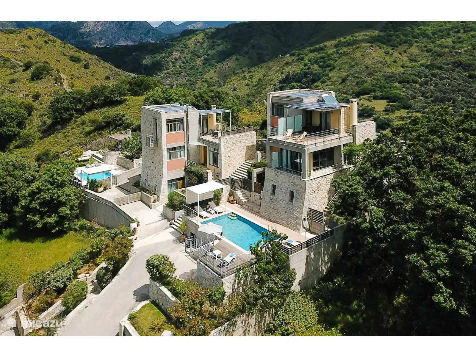 Sinds 2021 zijn we de trotse en gelukkige eigenaar geworden van deze 2 heerlijke en unieke villas in Zuid Rethymnon op het mooie Griekse eiland Kreta. We zijn verliefd op de Villas en haar prachtige groene omgeving boven op een bergkam. Aan de ene kant de prachtige Vallei met wijn- en olijfgaarden en de andere kant in de verte de Libische Zee.
