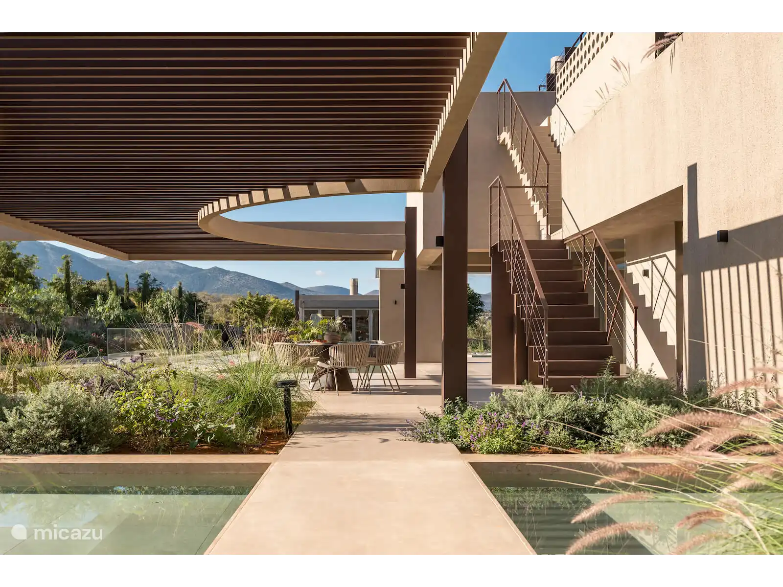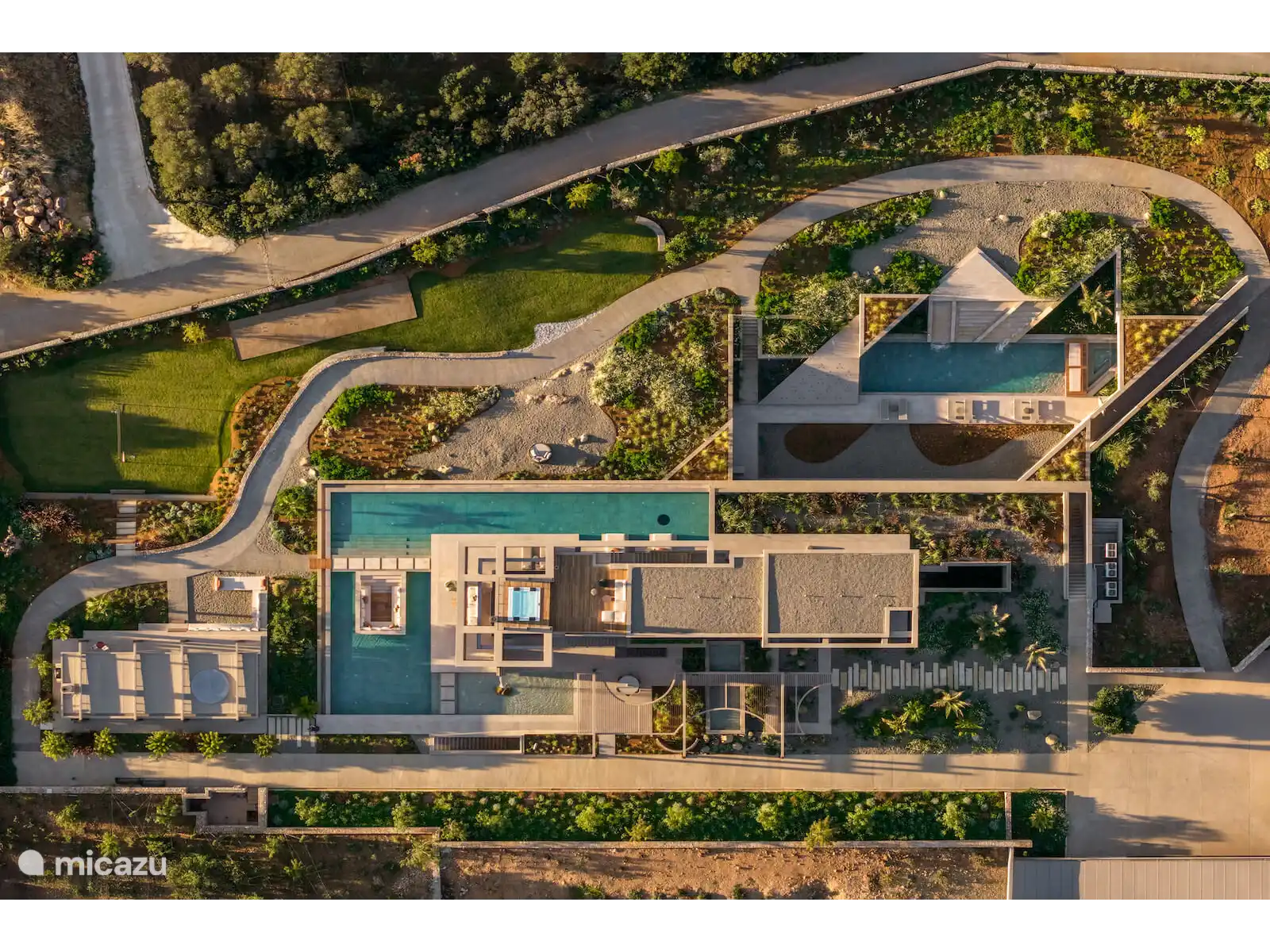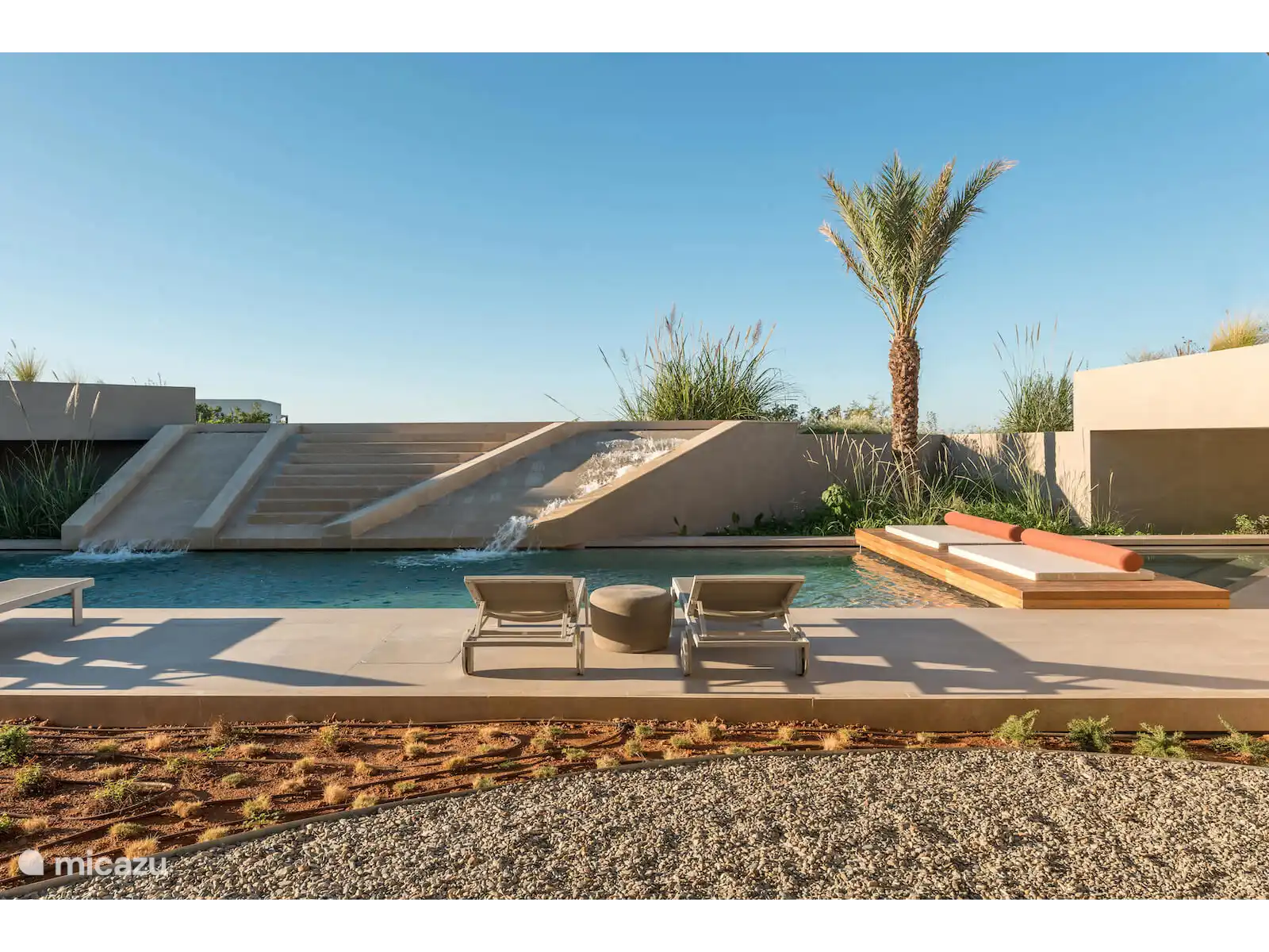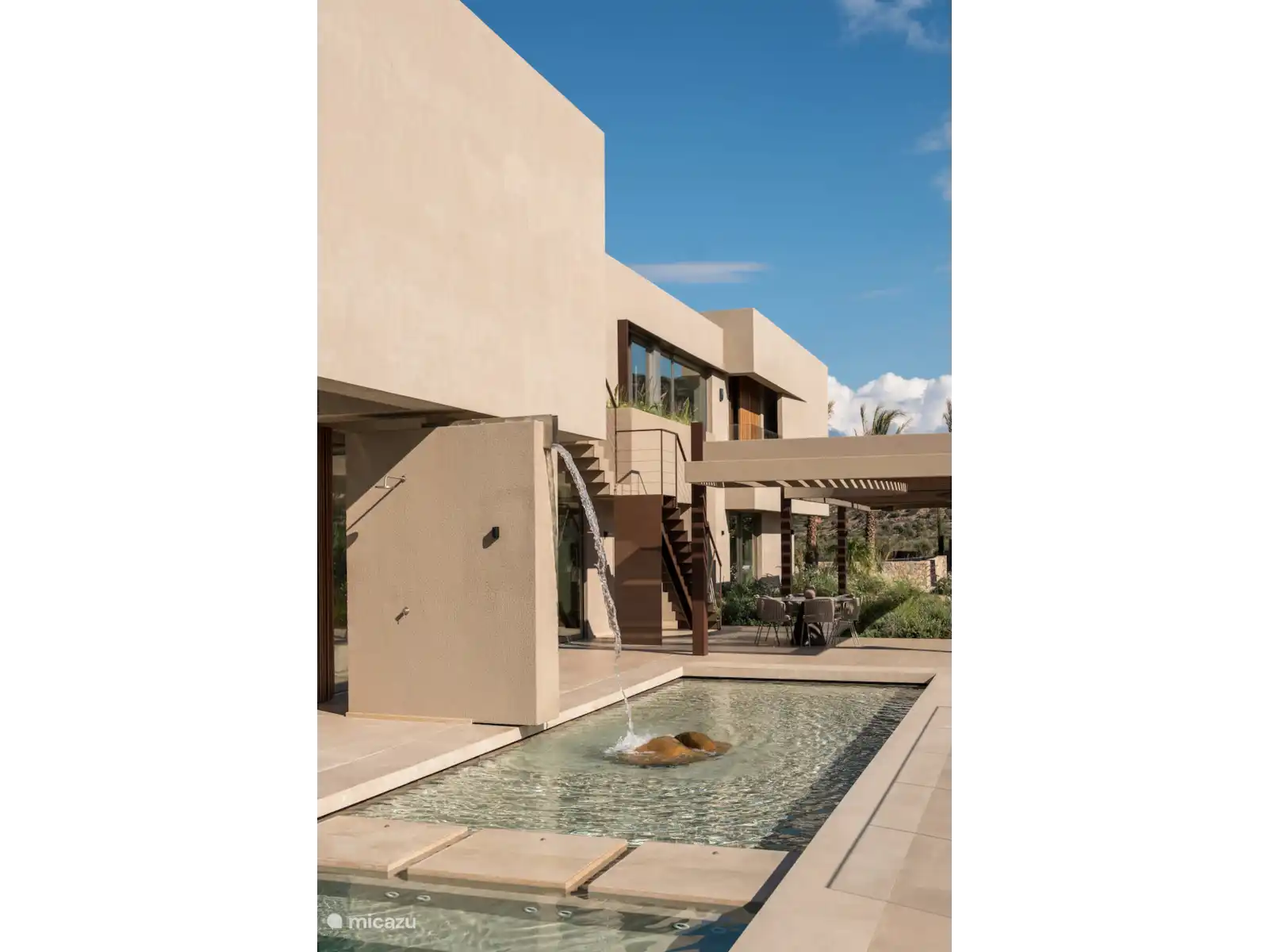 De buitenruimtes zijn ontworpen voor ultieme ontspanning en vermaak, met 450 m² aan zwembadfaciliteiten, waaronder een spectaculair hoofdzwembad van 28 meter, een zwembad van 20 meter met verwarming op verzoek, en twee jacuzzi's, allemaal naadloos geïntegreerd in het landschap.