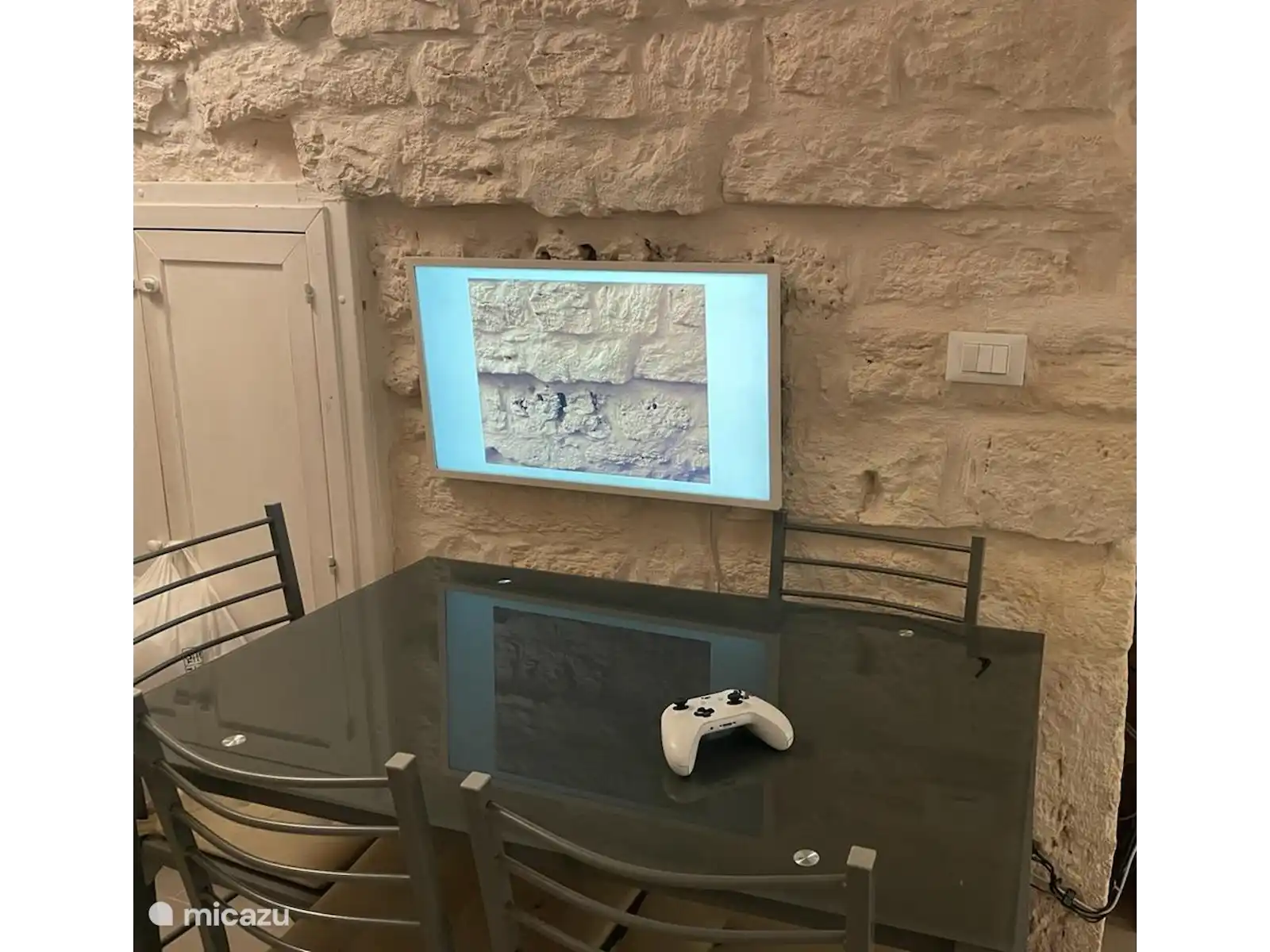 De keuken is voorzien van alle moderne faciliteiten, een eettafel, een zithoek met 2 stoelen, een televisie (via internet) en een X-Box One. Buiten in de schaduw ligt een veranda voor al fresco dining. De veranda heeft een dak van lamellen die automatisch kunnen worden geopend en gesloten. Ook is buiten een pergola met een tafel gemaakt van de originele deur van de 500 jaar oude trullo. Er is voldoende tuinmeubilair aanwezig, inclusief vier ligstoelen bij het zwembad en parasols. HET ZWEMBAD IS GEOPEND VAN MEI TOT EN MET OKTOBER.