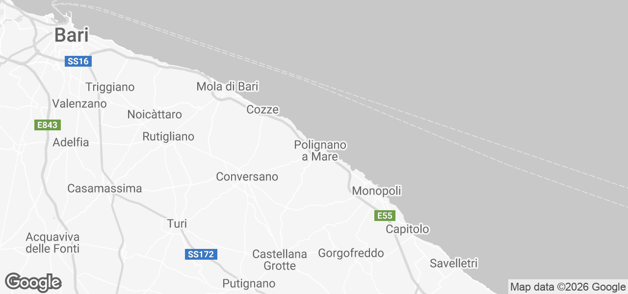 Het strand van Cala Paura en het sfeervolle Cala Paguro liggen slechts 200 meter verderop, net aan de overkant van de straat. Slechts vijf minuten lopen liggen het beroemde Cala Monachile en het charmante historische centrum van Polignano a Mare.