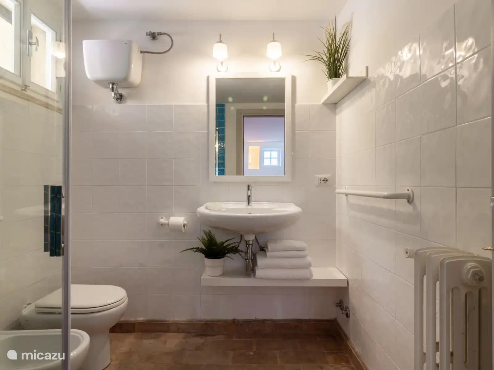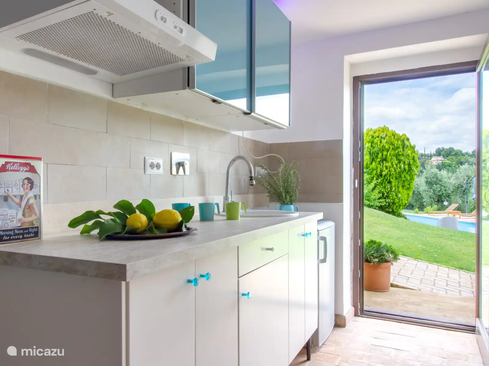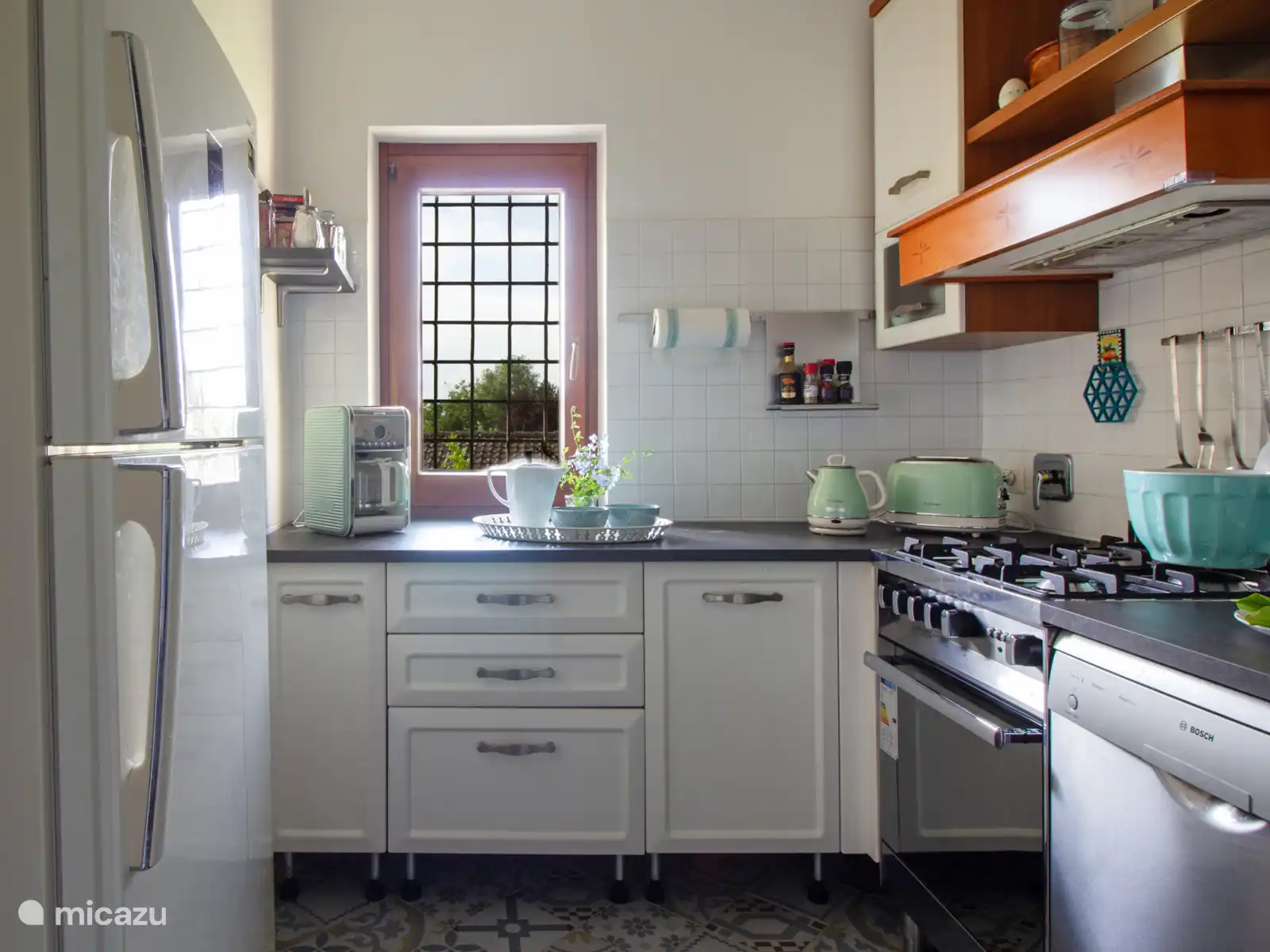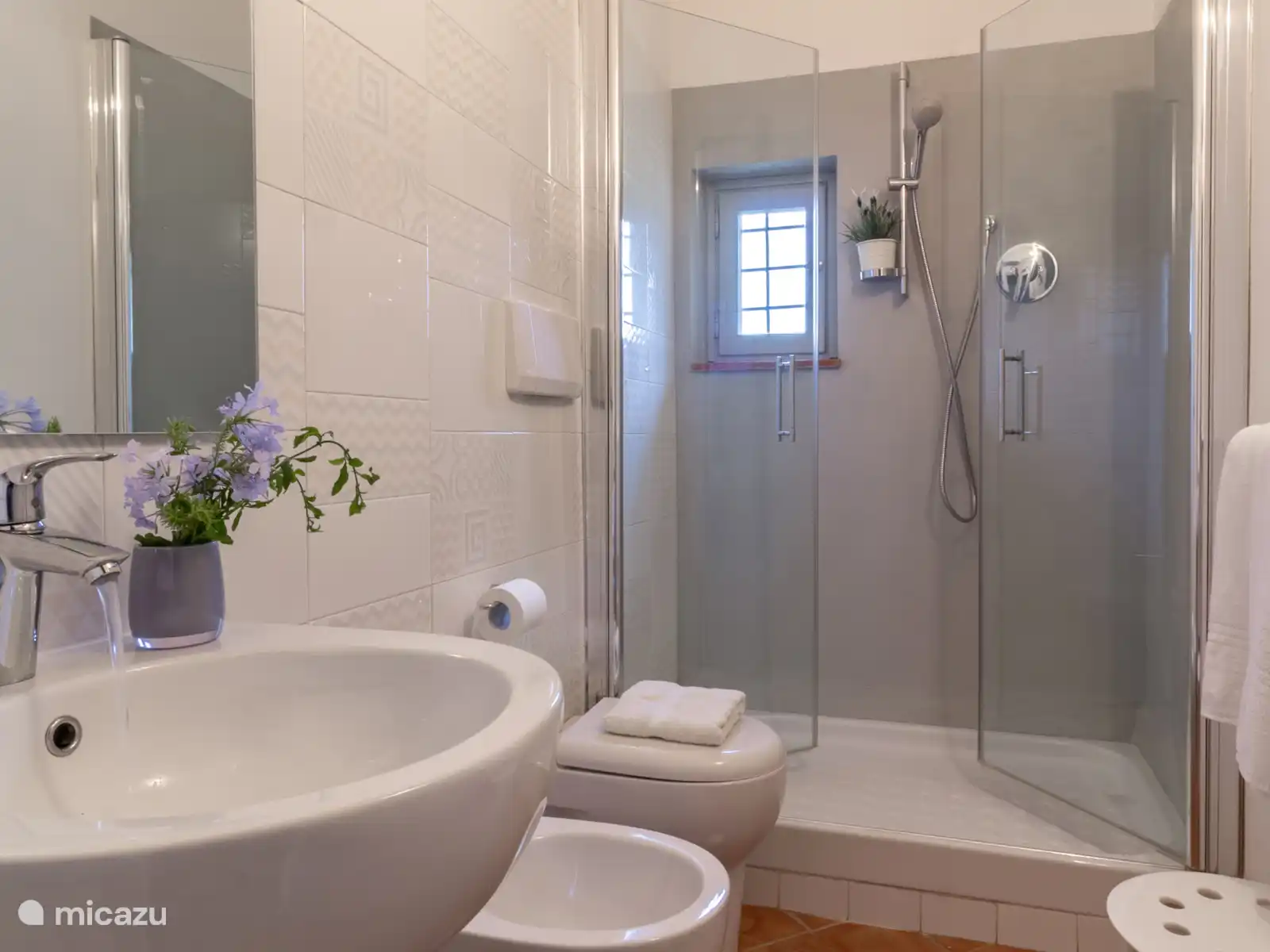 Vanuit de tuin loop je naar de benedenverdieping waar zich een charmant studio-appartement bevindt – met eigen badkamer, keukenblok en een fijn bed. Ideaal wanneer bijvoorbeeld grootouders meegaan, je met meer gezinnen gaat en je net wat meer privacy zoekt.