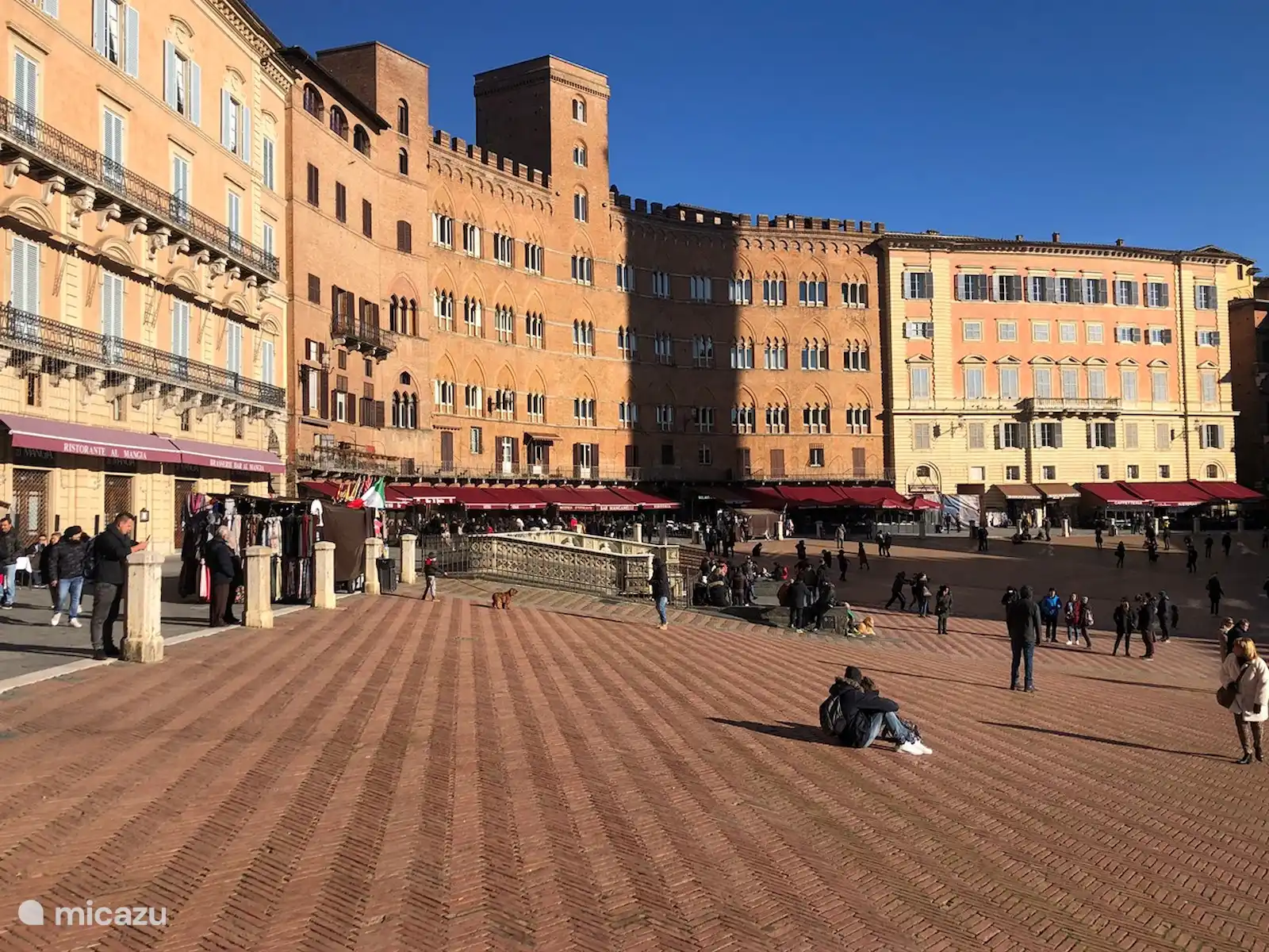 Gelegen in een palazzo dat tegen de heuvel is aangebouwd heeft het appartement beneden een moderne keuken met openslaande deuren in wat vroeger de stal was. Vanuit de keuken is er een wenteltrap naar de huiskamer. Het appartement deelt het trappenhuis met twee andere appartementen. Vanuit de keuken loop je het pleintje op met bomen en bankjes.