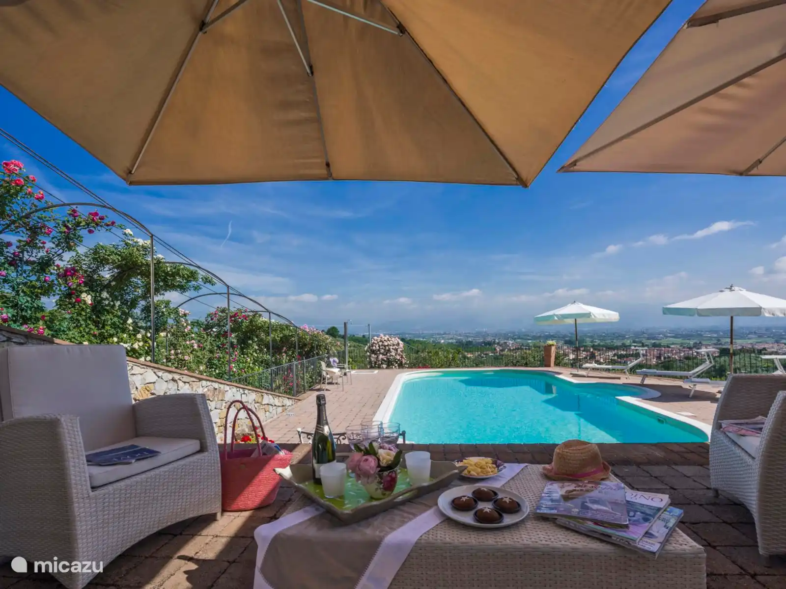- Omheind privézwembad (12 x 5,6 m; diepte 1,4–1,5 m)