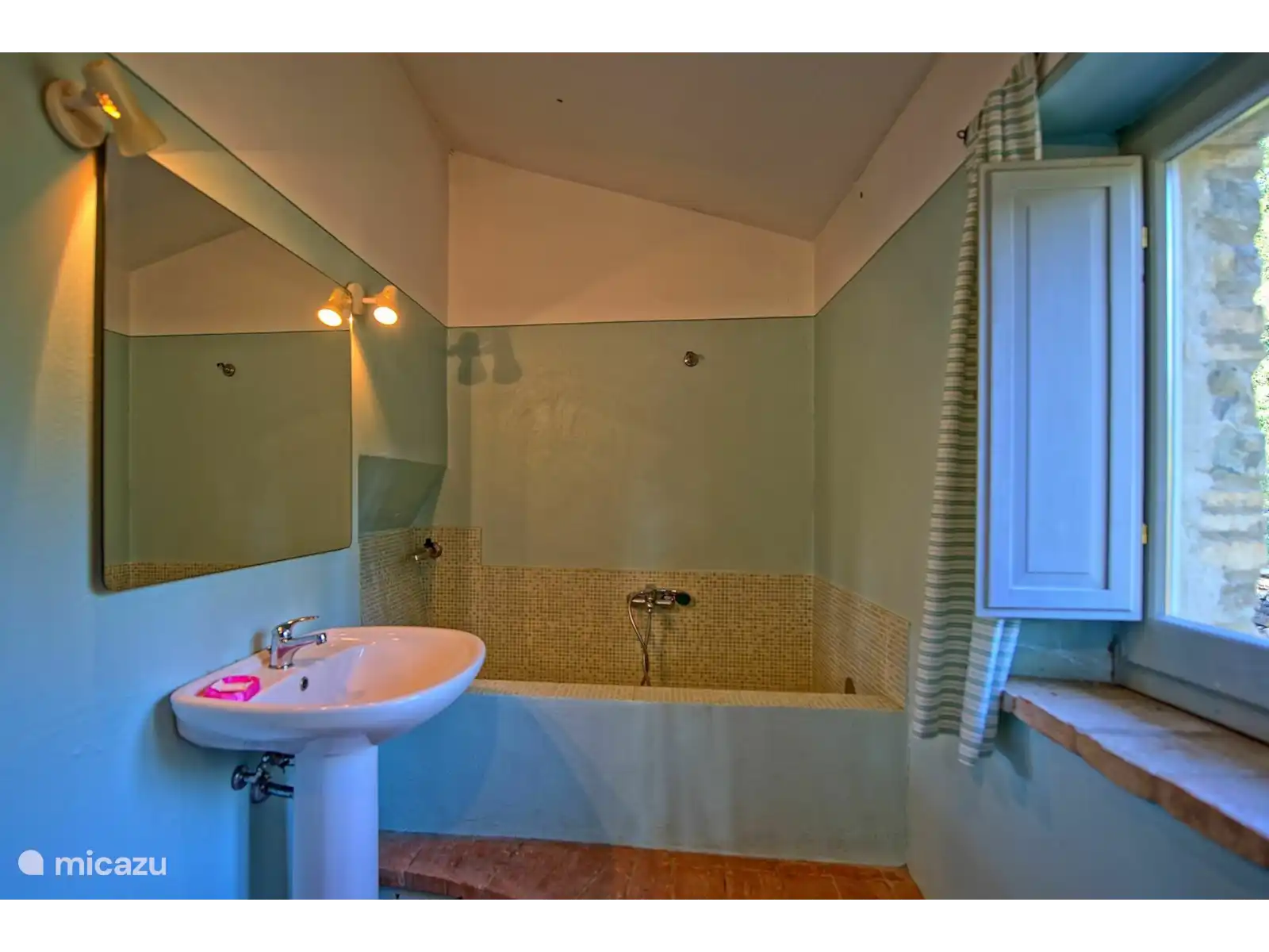 Dit vakantiehuis is verfijnd ingericht in typische landelijke stijl en biedt comfortabele interieurs: in de woonkamer staat een warme open haard tot de beschikking van de gasten voor het koudste seizoen, samen met een bank en een fauteuil. De eethoek heeft een grote houten tafel en de mooie keuken is uitgerust met oven, vaatwasser en 4 kookplaten. Er zijn 2 tweepersoonsslaapkamers en 1 slaapkamer met twee aparte bedden voor maximaal 6 gasten en 3 badkamers. Alle kamers zijn voorzien van airconditioning.