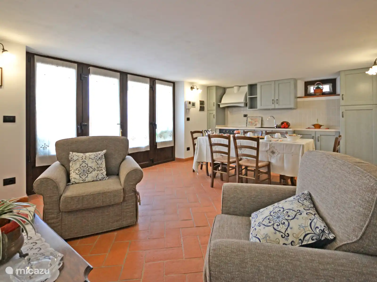 Het interieur van Villa Anita is ruim, helder en wordt gekenmerkt door plafonds met zichtbare houten balken en terracotta vloeren die doen denken aan de rustieke Toscaanse stijl, die wereldwijd beroemd is. De villa bestaat uit drie verdiepingen en is verdeeld in drie appartementen die met elkaar communiceren, een kenmerk dat het perfect maakt voor grote groepen om samen te zijn, maar tegelijkertijd hun privacy te behouden.