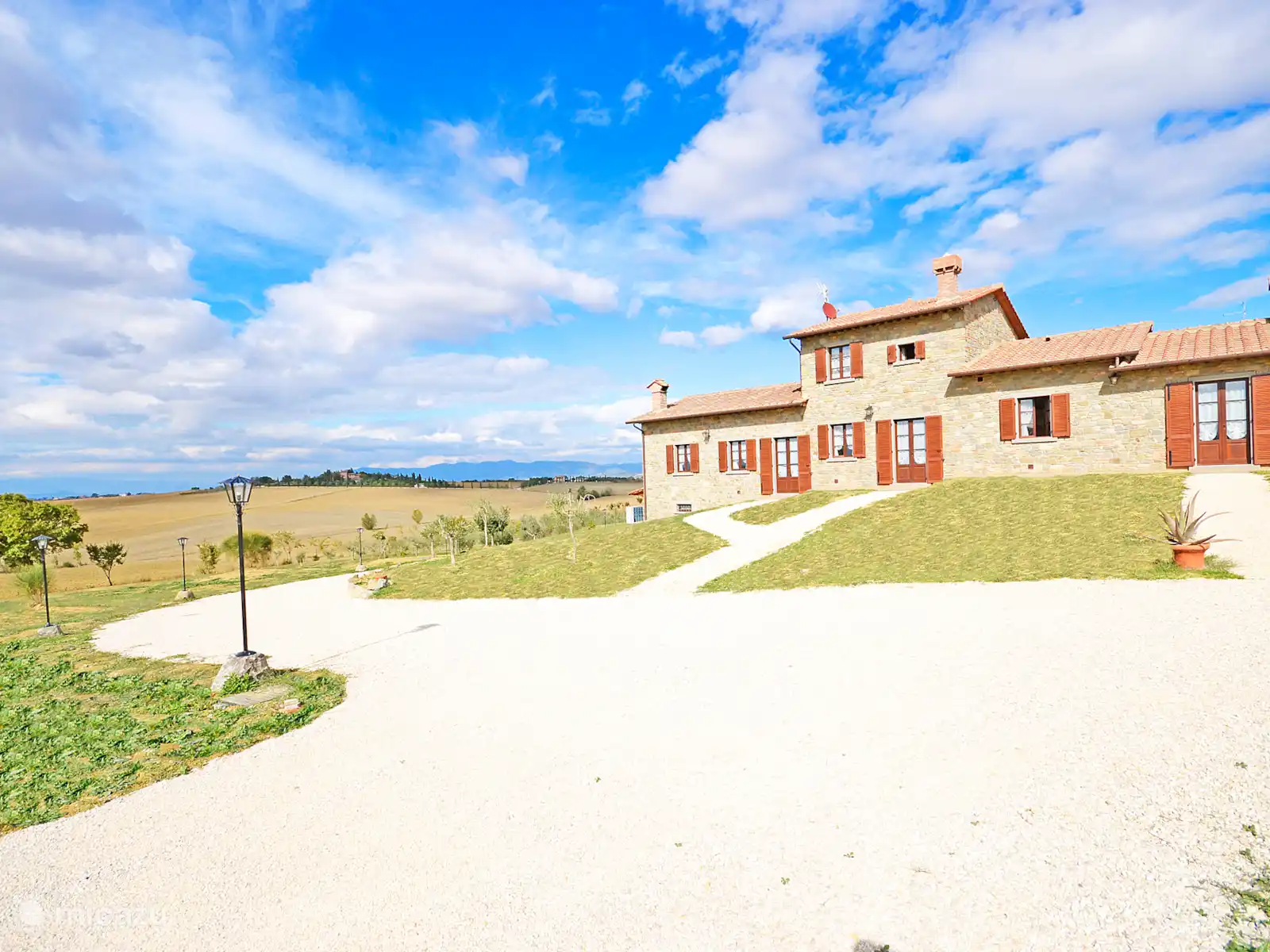 De villa, recent gerenoveerd (de werkzaamheden werden voltooid in oktober 2015), is volledig van steen gebouwd en ligt in een grote tuin vol bloemen en planten. De ligging maakt het de ideale plek om de mooiste steden van Toscane en Umbrië te ontdekken, zoals Cortona, Montepulciano, Montalcino, Perugia, Assisi, Pienza en vele anderen, allemaal binnen minder dan een uur rijden.