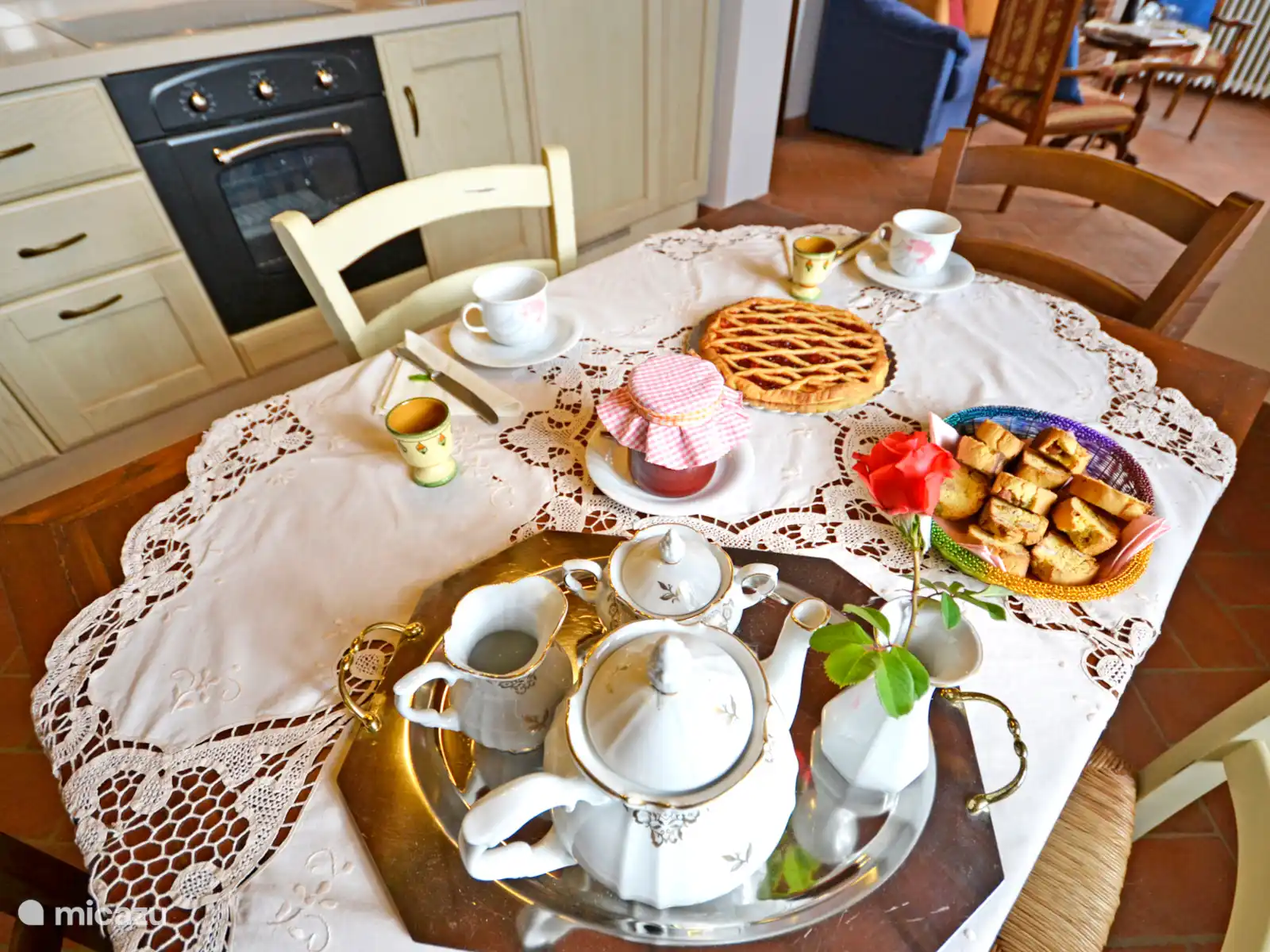 - 2 volledig uitgeruste keukens met: oven, magnetron, koelkast met vriezercompartiment, vaatwasser, Amerikaanse koffiemachine, Italiaanse moka, broodrooster