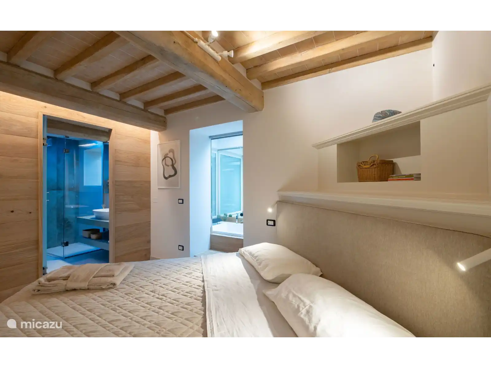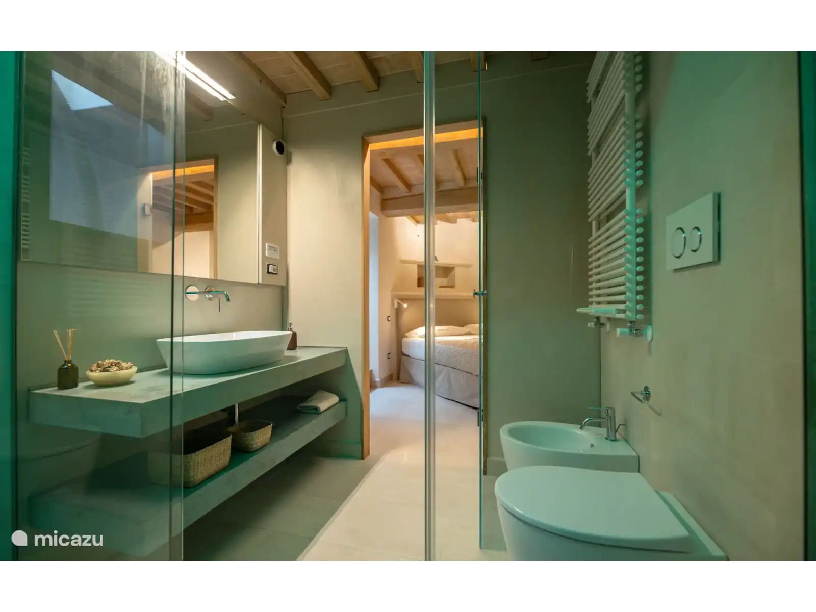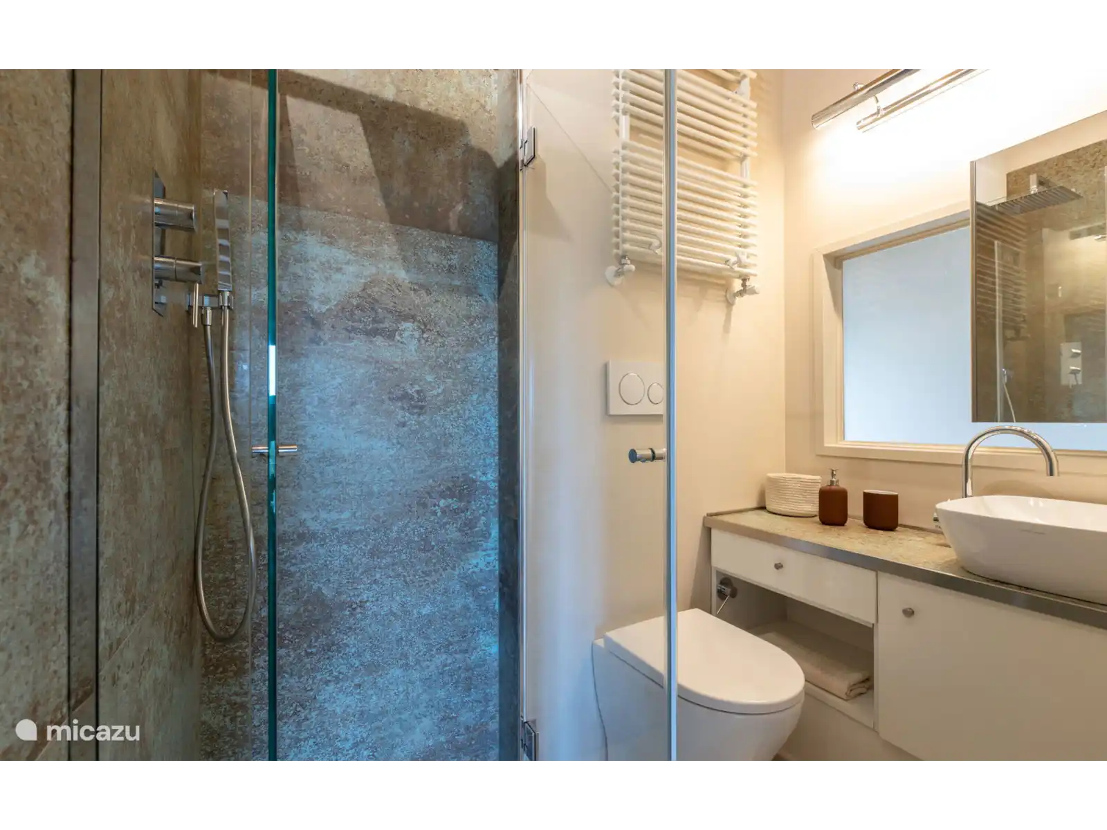 - een dubbele slaapkamer met hydromassagebad en een eigen badkamer met douche