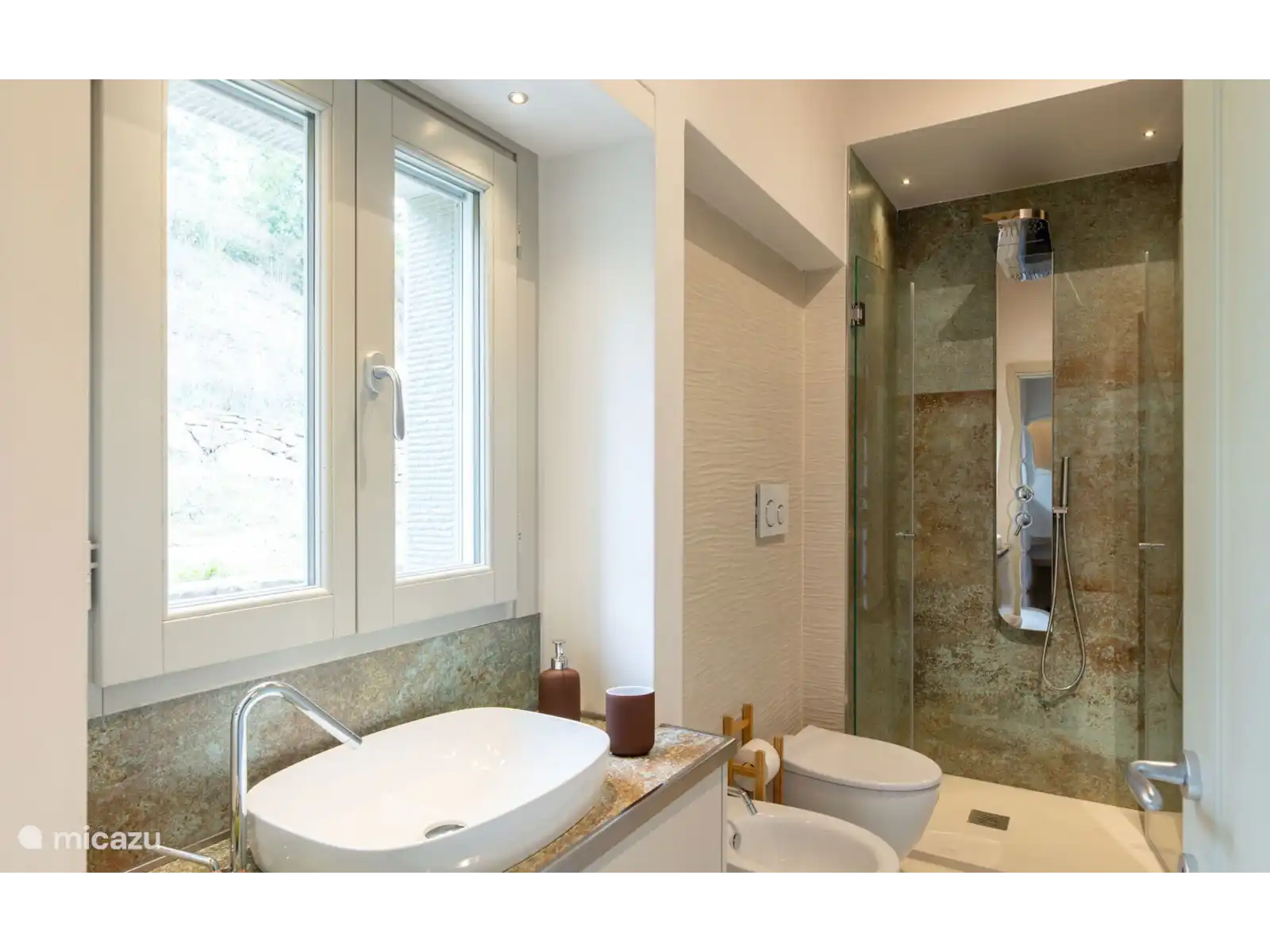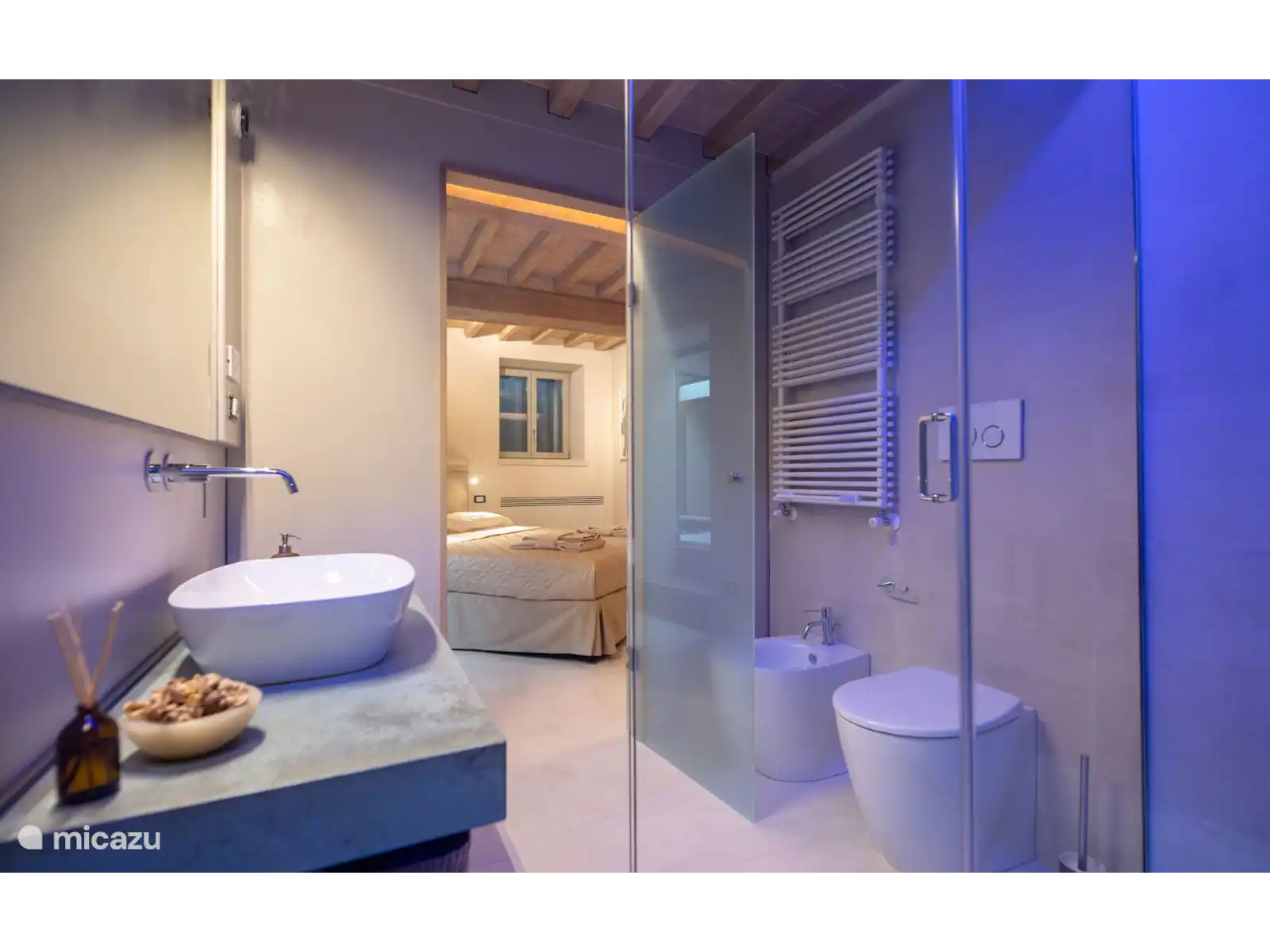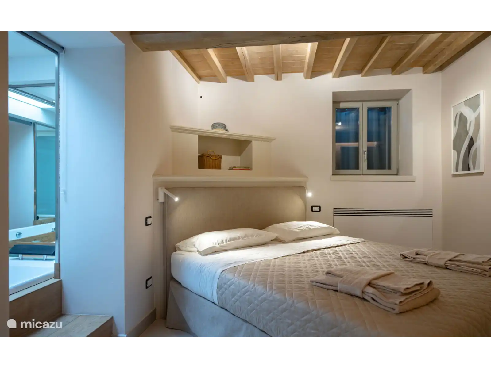 - een dubbele slaapkamer met hydromassagebad en een eigen badkamer met douche