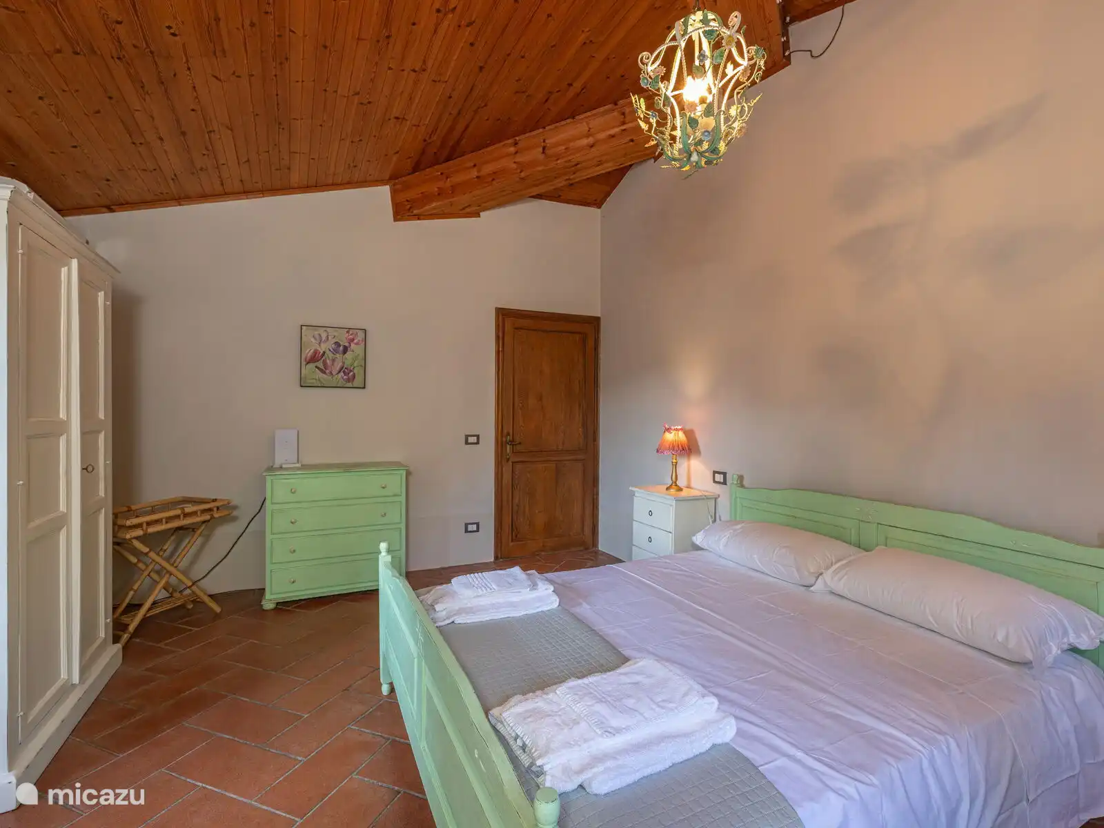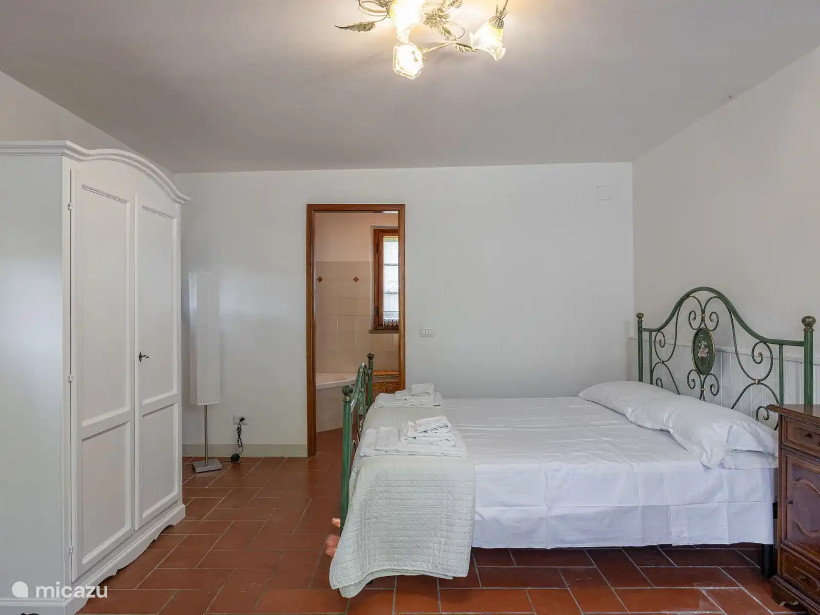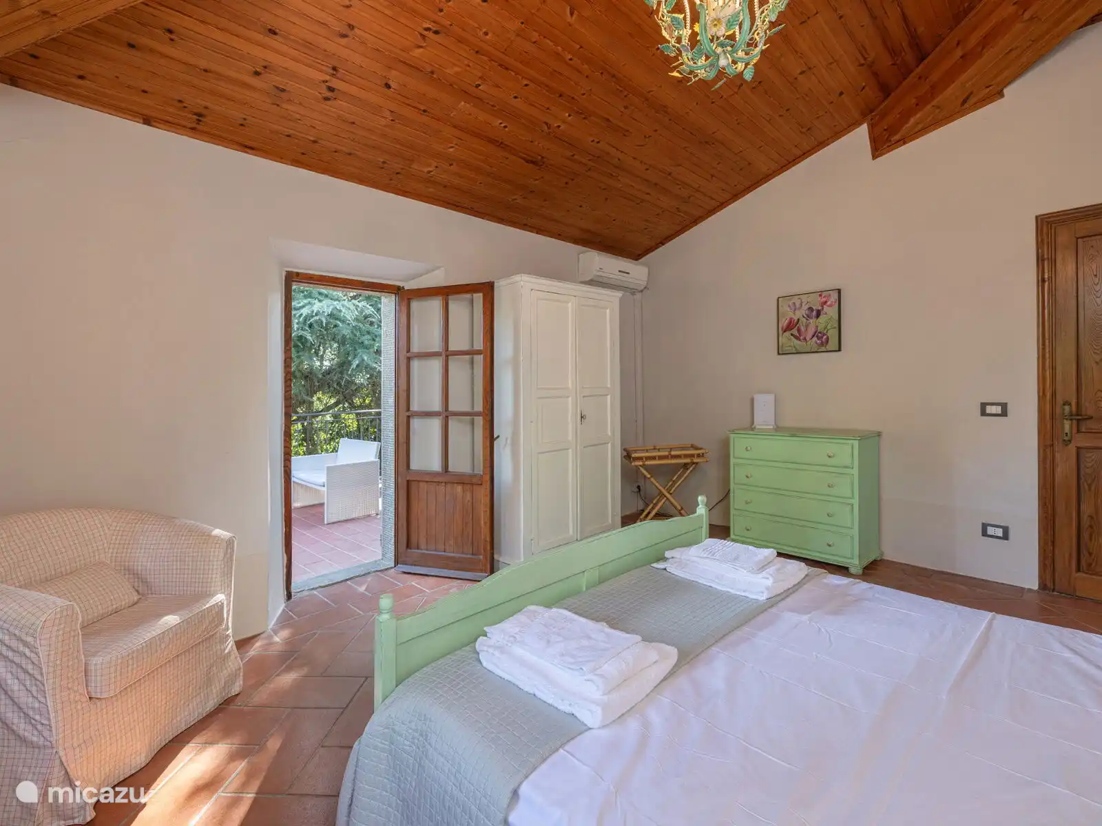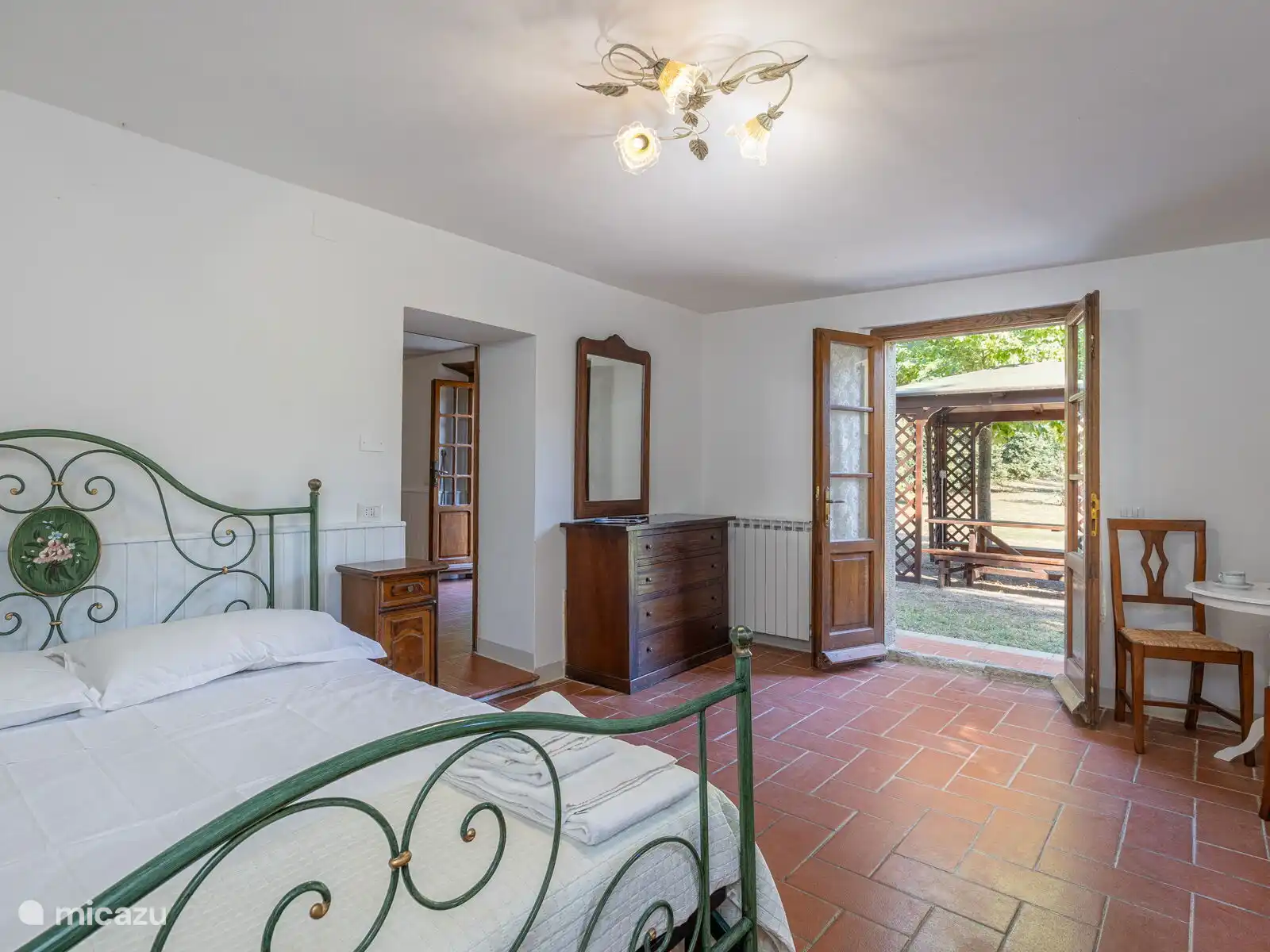 • Een tweepersoonskamer met uitgang naar het terras