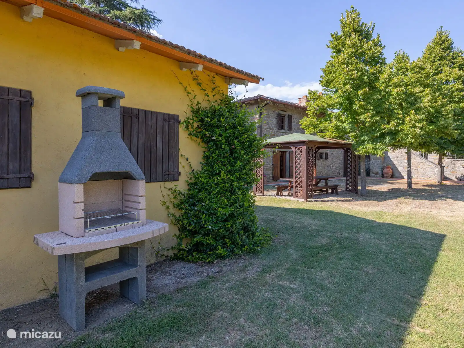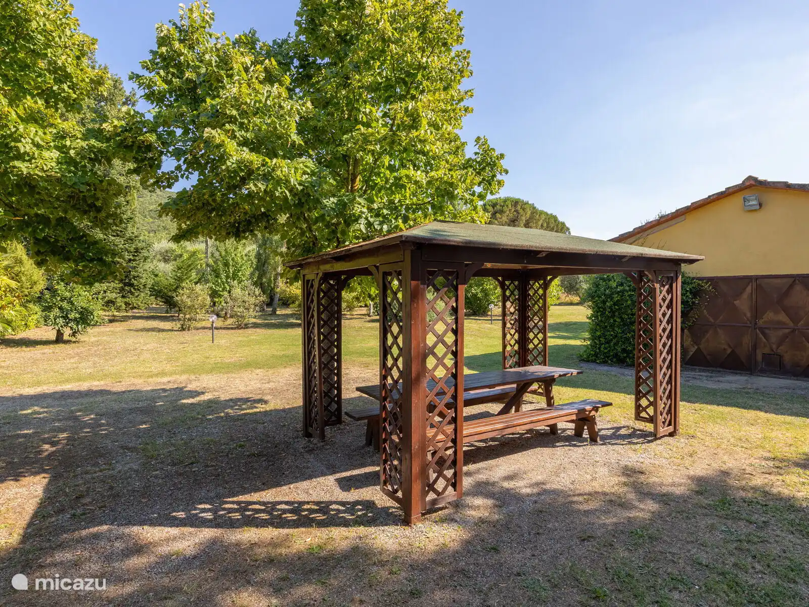 Het terrein ligt in een grote, volledig omheinde tuin waar we diverse ontspannings- en entertainmentruimtes vinden. Ideale plek voor gezinnen, het heeft een groot veld (waar men voetbal speelt) en een omheind zwembad met toegangspoort.