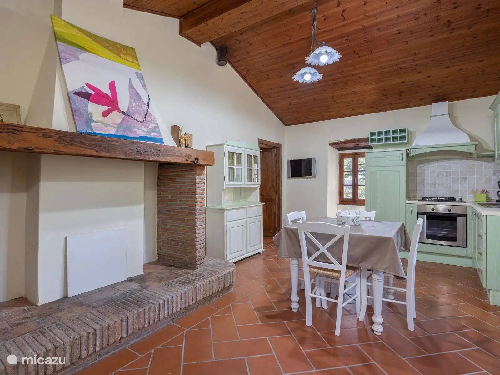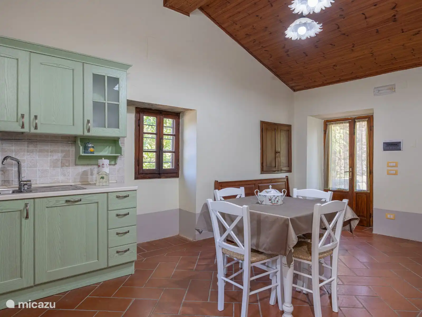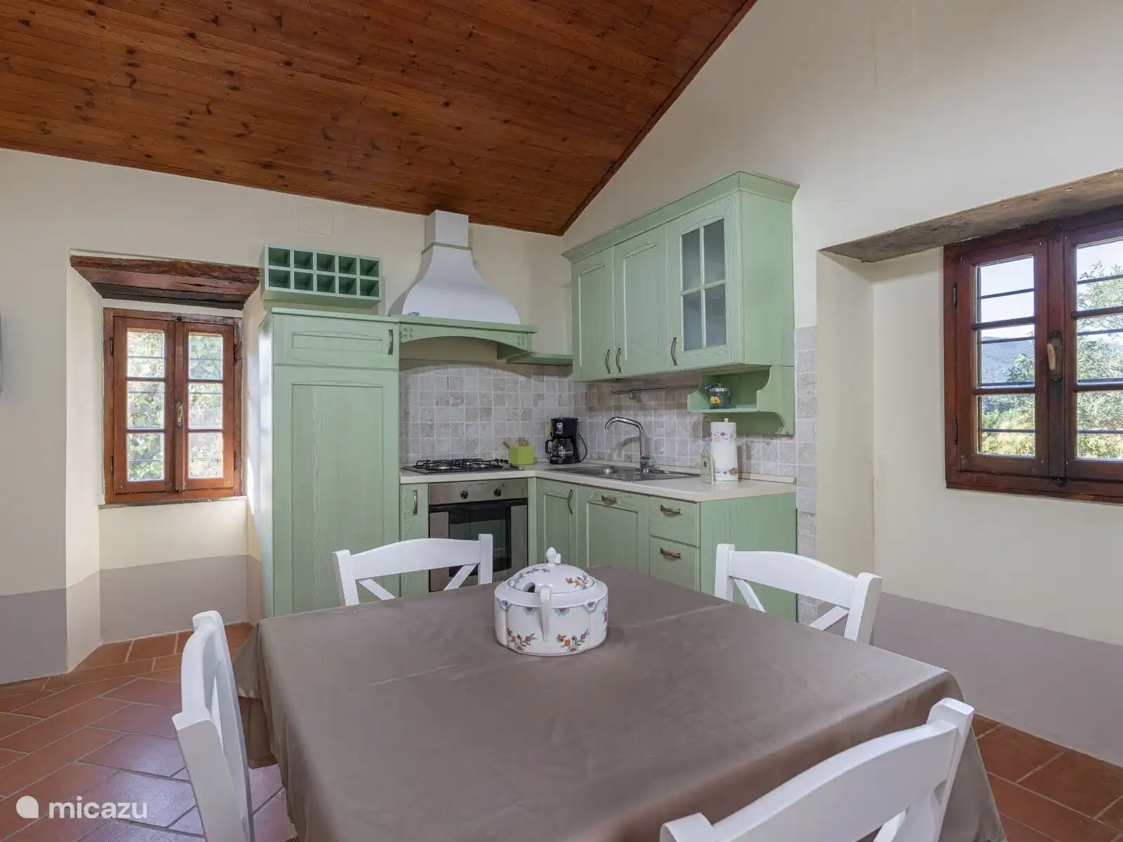 • volledig uitgeruste keuken met oven, koelkast, vriezer, vaatwasser, broodrooster, Amerikaanse koffiezetmachine, Italiaanse moka-koffiezetapparaat, magnetron, eettafel