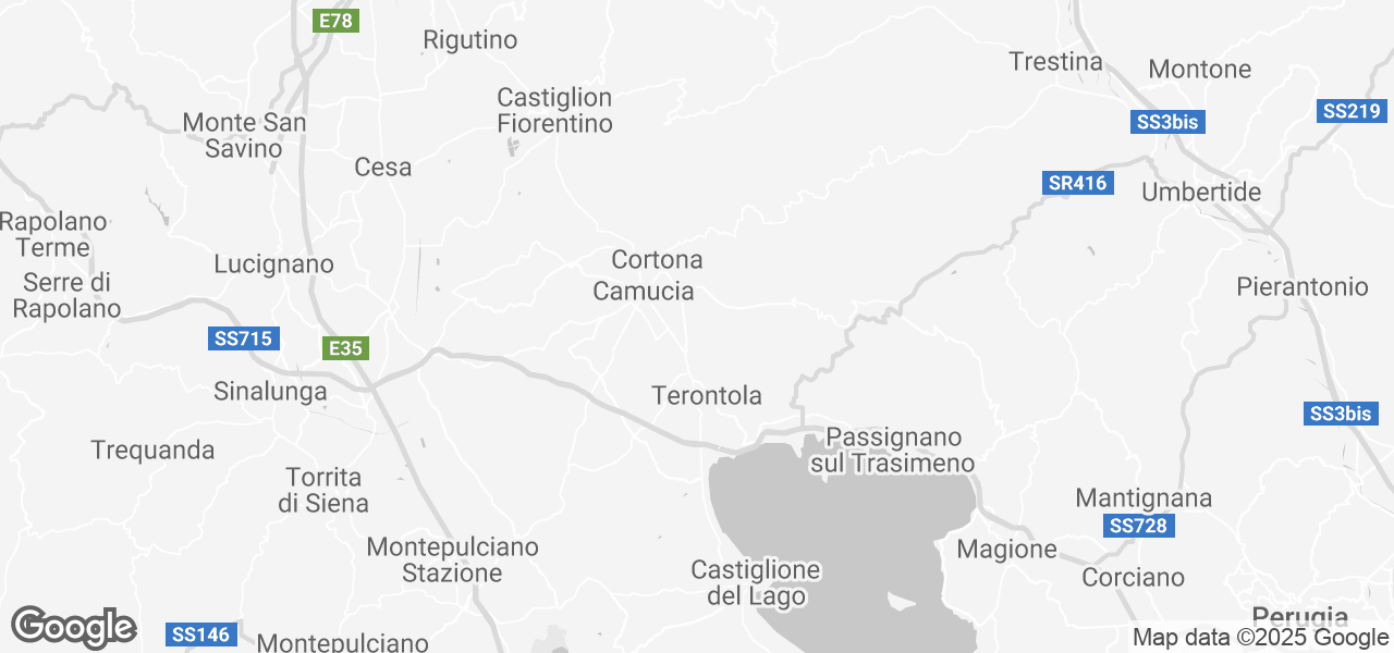 Cortona 5 km, Meer Trasimeno 20 km, Arezzo 32 km, Montepulciano 35 km, Perugia 54 km, Montalcino 69 km, Siena 72 km, Assisi 74 km