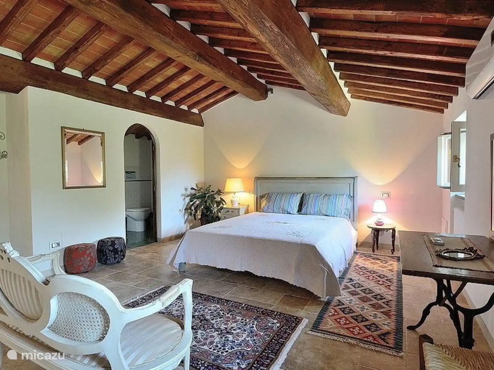 Vanuit de woonkamer leidt een prachtige stenen trap naar de derde slaapkamer, een geweldige suite met een privébadkamer en douche.