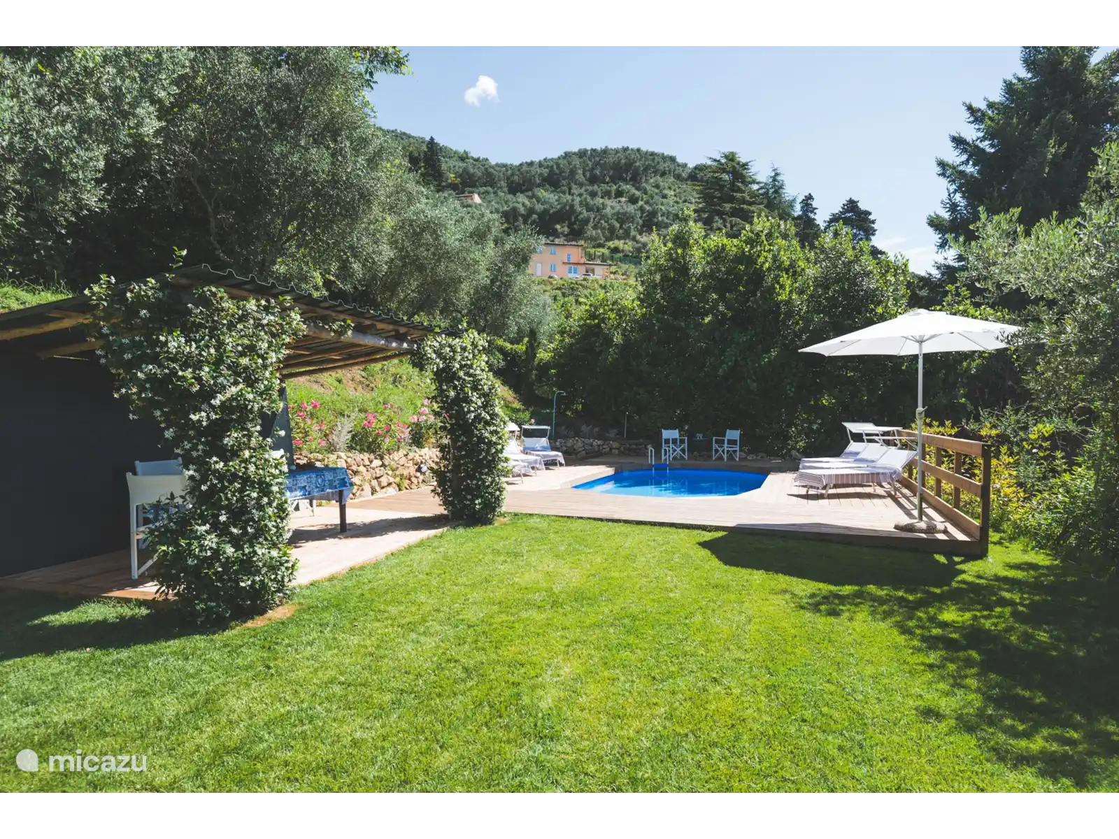 Buiten biedt de villa een groene oase van ontspanning, op slechts een steenworp afstand van Camaiore. De buitenpergola is de perfecte plek om buiten te lunchen en dineren, terwijl het zwembad, compleet met comfortabele ligstoelen en parasols, uitnodigt tot pure ontspanning en zonovergoten rust in de Toscaanse bries. Het zwembad is geopend van 1 mei tot 1 oktober.