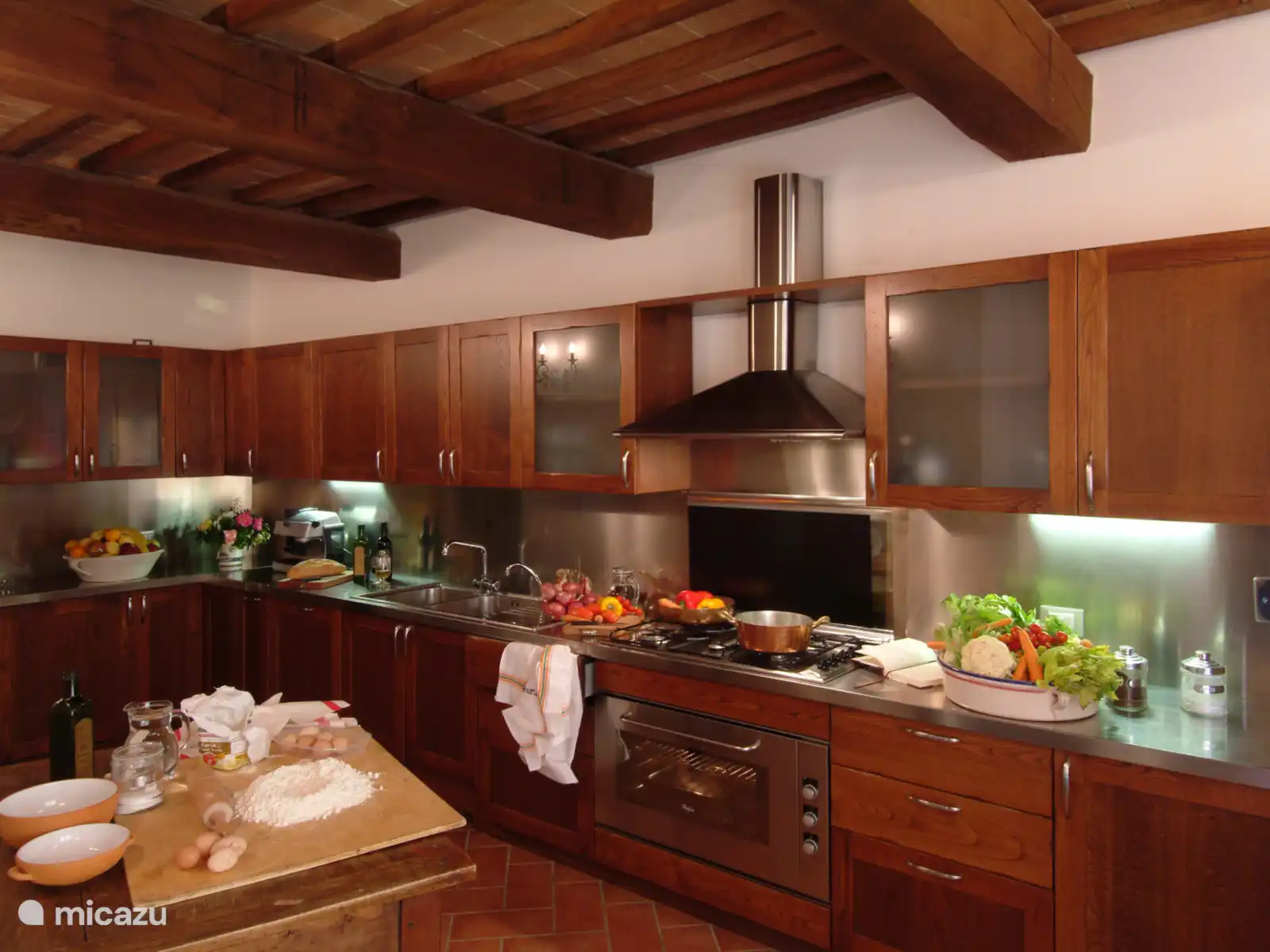 Deze ruime villa verwelkomt gasten in een luchtig, licht interieur dat traditionele Toscaanse elementen harmonieus combineert met moderne voorzieningen. De belangrijkste woonruimtes omvatten een grote woonkamer met satelliet-tv, open haarden en comfortabele stoelen, samen met meerdere eetgedeeltes en volledig uitgeruste keukens met ovens, kookplaten, magnetrons, vaatwassers en koffiezetapparaten.