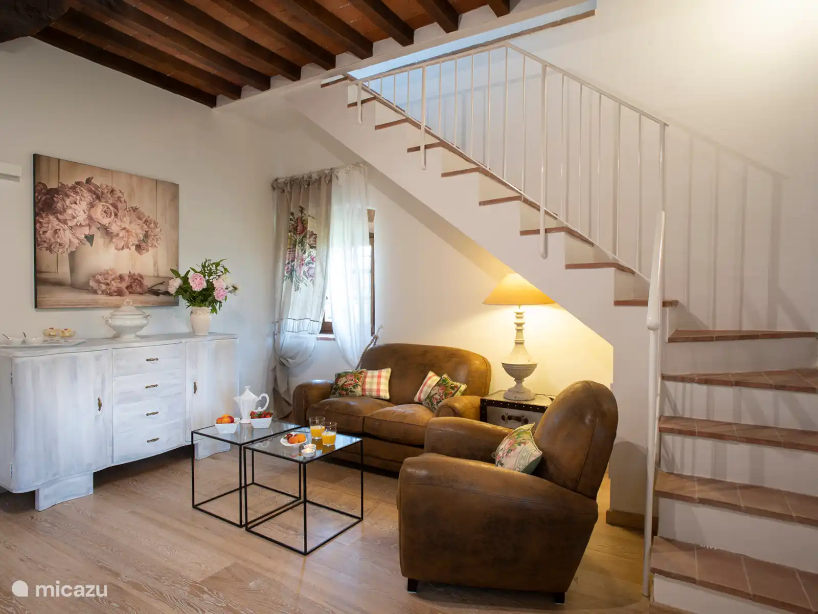 Villa Armonia verwelkomt gasten in een warm, elegant interieur met houten plafonds, stenen muren en originele open haarden die een tijdloze Toscaanse charme oproepen. De woonruimtes zijn licht en ruim, ontworpen voor zowel ontspanning als gezellig dineren.