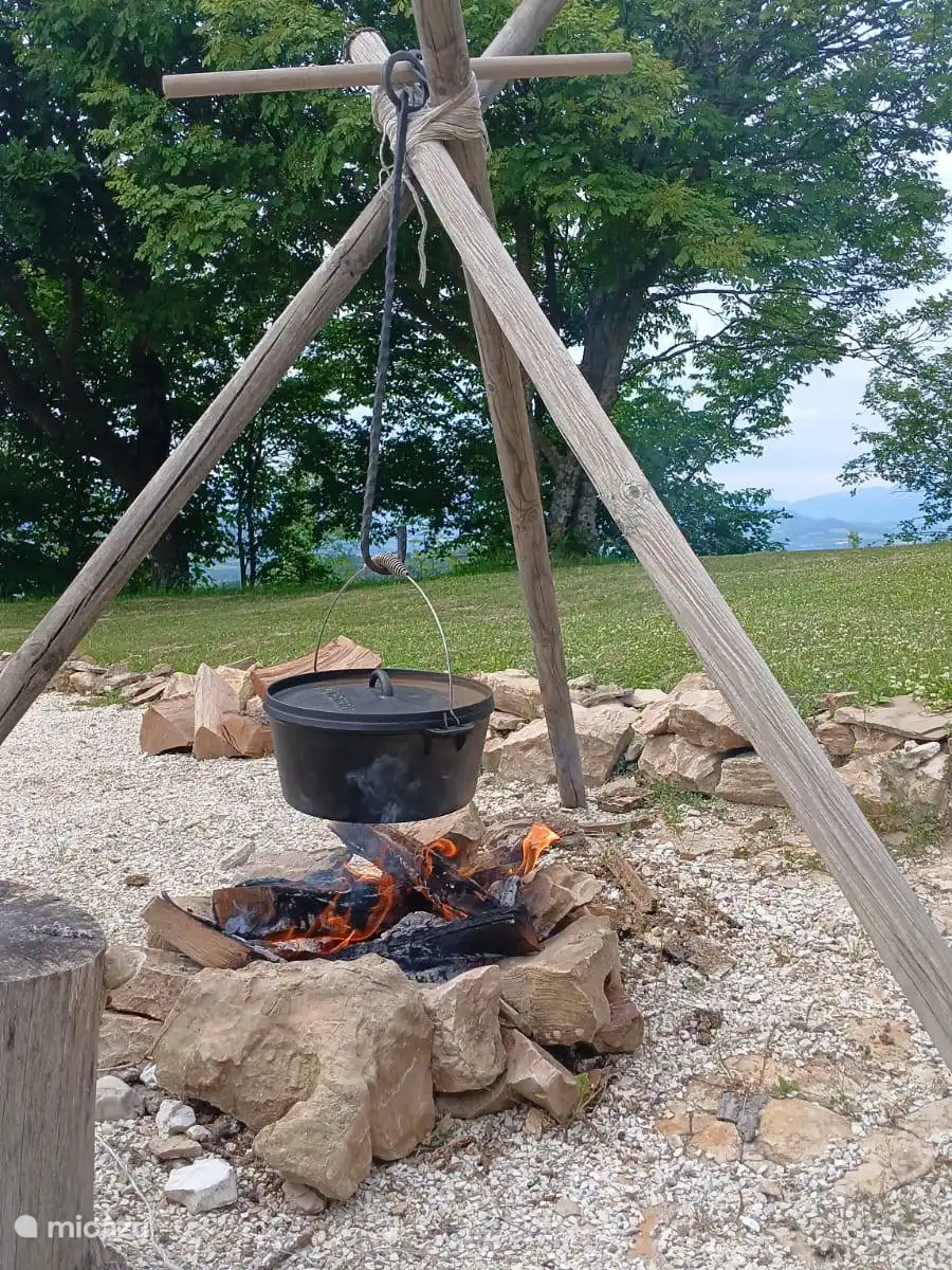 Op het terrein is een houtgestookte pizza oven aanwezig.