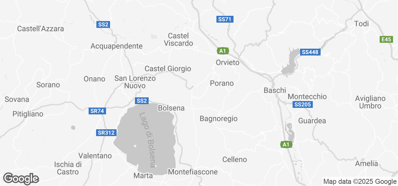De woning ligt halverwege tussen de bekende stad Orvieto en het Bolsenameer met zijn charmante dorpjes. Naast het meer en Orvieto zijn er veel mooie dorpjes in de omgeving die een bezoek waard zijn (Civita di Bagnoregio, Todi, Montepulciano, Tuscania, enz.) en de locatie is uitstekend om Umbrië, Zuid-Toscane, Rome en Noord-Lazio te bezoeken. Siena en Rome liggen beide op 1,5 uur rijden en de zandstranden van Tarquinia op 1 uur rijden (het bekende Argentario ligt op 1,2 uur rijden). De snelweg en het treinstation liggen op 10 minuten rijden. De woning ligt op ongeveer 10 km van de bekende stad Orvieto en 10 km van het Bolsenameer. Het treinstation van Orvieto Scalo ligt op 12 km afstand. Als u Rome en Florence wilt bezoeken, bent u daar ongeveer anderhalf uur over.