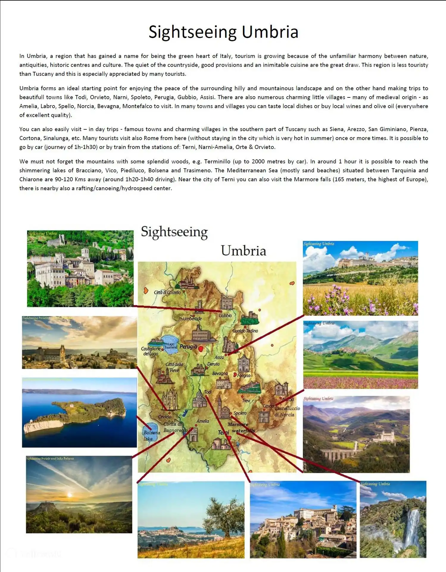 De accommodatie ligt halverwege tussen de bekende stad Orvieto en het Bolsenameer met zijn charmante dorpjes. Naast het meer en Orvieto zijn er veel mooie dorpjes in de omgeving die een bezoek waard zijn (Civita di Bagnoregio, Todi, Montepulciano, Tuscania,...) en de locatie is uitstekend om Umbrië, Zuid-Toscane, Rome en Noord-Lazio te bezoeken. Siena en Rome liggen beide op 1,5 uur rijden en de zandstranden van Tarquinia op 1 uur rijden (het bekende Argentario op 1,2 uur rijden). Snelweg en treinstation op 10 minuten rijden. Het ligt op ongeveer 10 km van de bekende stad Orvieto en 10 km van het Bolsenameer. Het treinstation van Orvieto Scalo ligt op 12 km afstand. Als u Rome en Florence wilt bezoeken, bent u daar in ongeveer 1,5 uur.