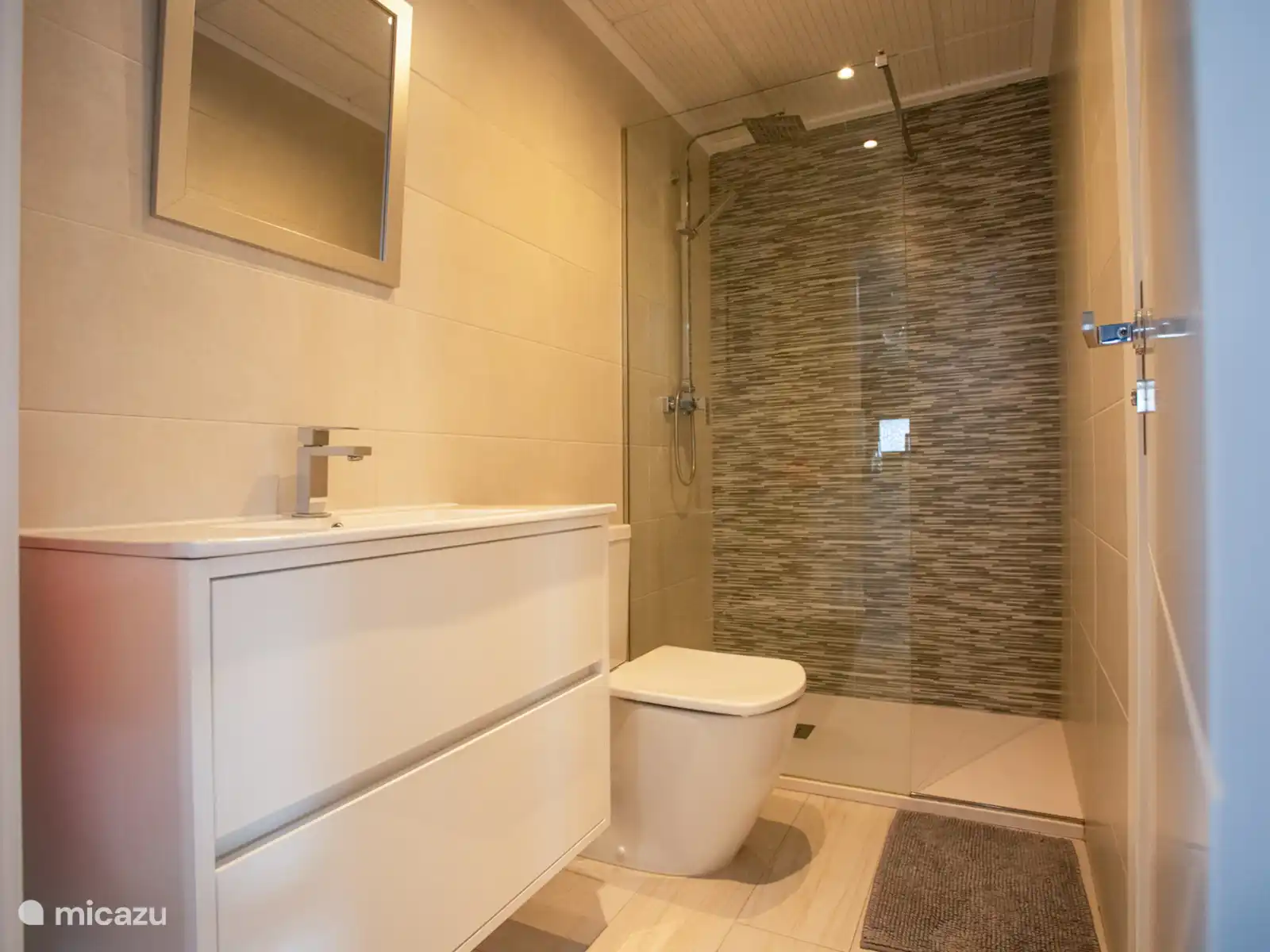 Bijzonder fraaie benedenwoning op de begane grond met een groot terras aan de voorzijde van de woning (met een schuifluifel om schaduw te creëren). Bij het betreden van de woning heeft u de beschikking over een grote open doorzon woon-eetkamer en keuken die smaakvol is ingericht en beschikt over alle moderne keukenapparatuur. Aan de voorzijde treft u een grote tweepersoons slaapkamer aan met toegang tot de en-suite-badkamer en aan de achterzijde van de woning een 2e ruime tweepersoons slaapkamer met ook een eigen en-suite badkamer. Aan de achterzijde van het appartement heeft u een 2e terras met buitenberging voorzien van een boiler en wasmachine en een heerlijke lounge set om te relaxen tot in de late uurtjes.