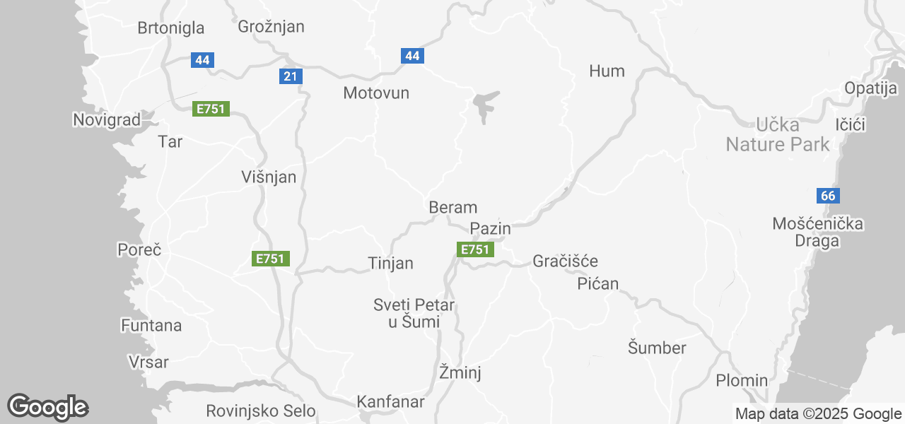 Dit charmante vakantiehuis ligt in het rustige dorpje Beram, niet ver van Pazin, in centraal Istrië. Het dichtstbijzijnde strand is in Poreč, op slechts een half uur rijden. De luchthaven in Pula ligt op 54 kilometer afstand, terwijl de grensovergang tussen Kroatië en Slovenië op 43 kilometer afstand ligt.