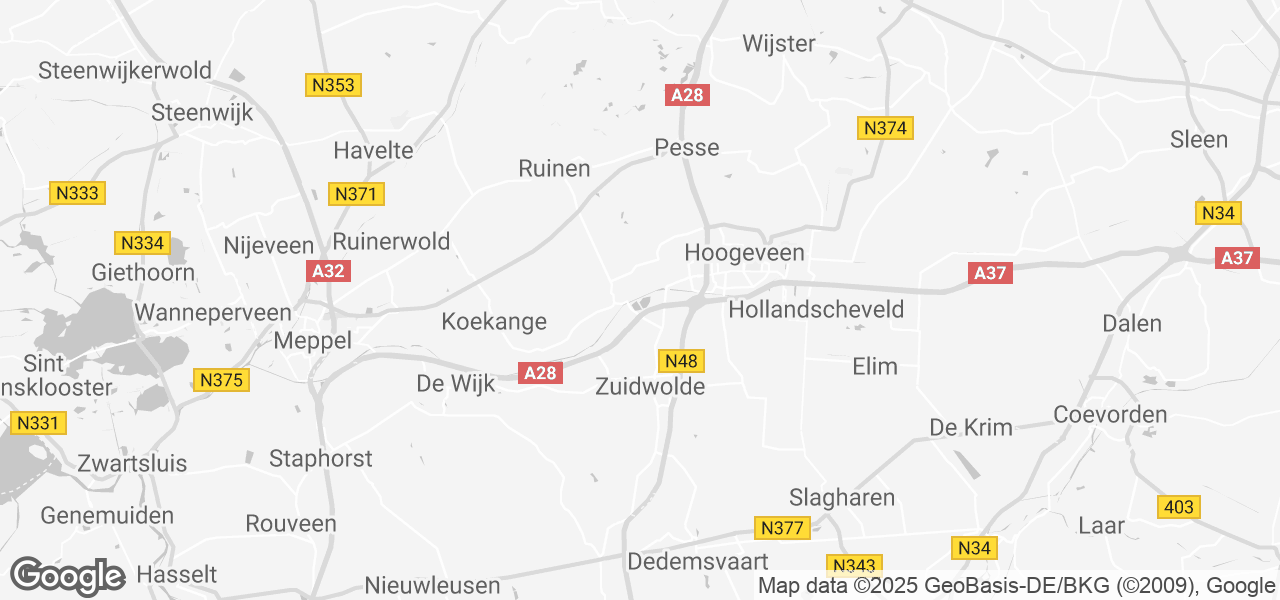 - De plaats Hoogeveen ligt op ongeveer 4 km afstand met o.a.