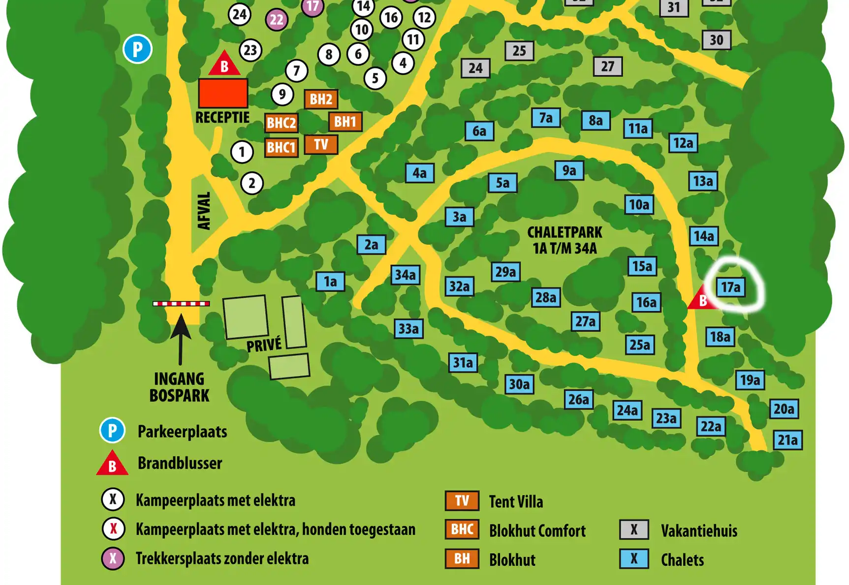 Het chalet ligt aan de rand van een kleinschalig bospark en je wandelt direct vanuit het chalet het bos in. Vanuit hier kun je verschillende wandelingen en fietstochten maken. Naast het chalet staat een schuurtje om fietsen te stallen. Op het terrein voor het chalet is een ruime privé parkeerplek met laadpaal.