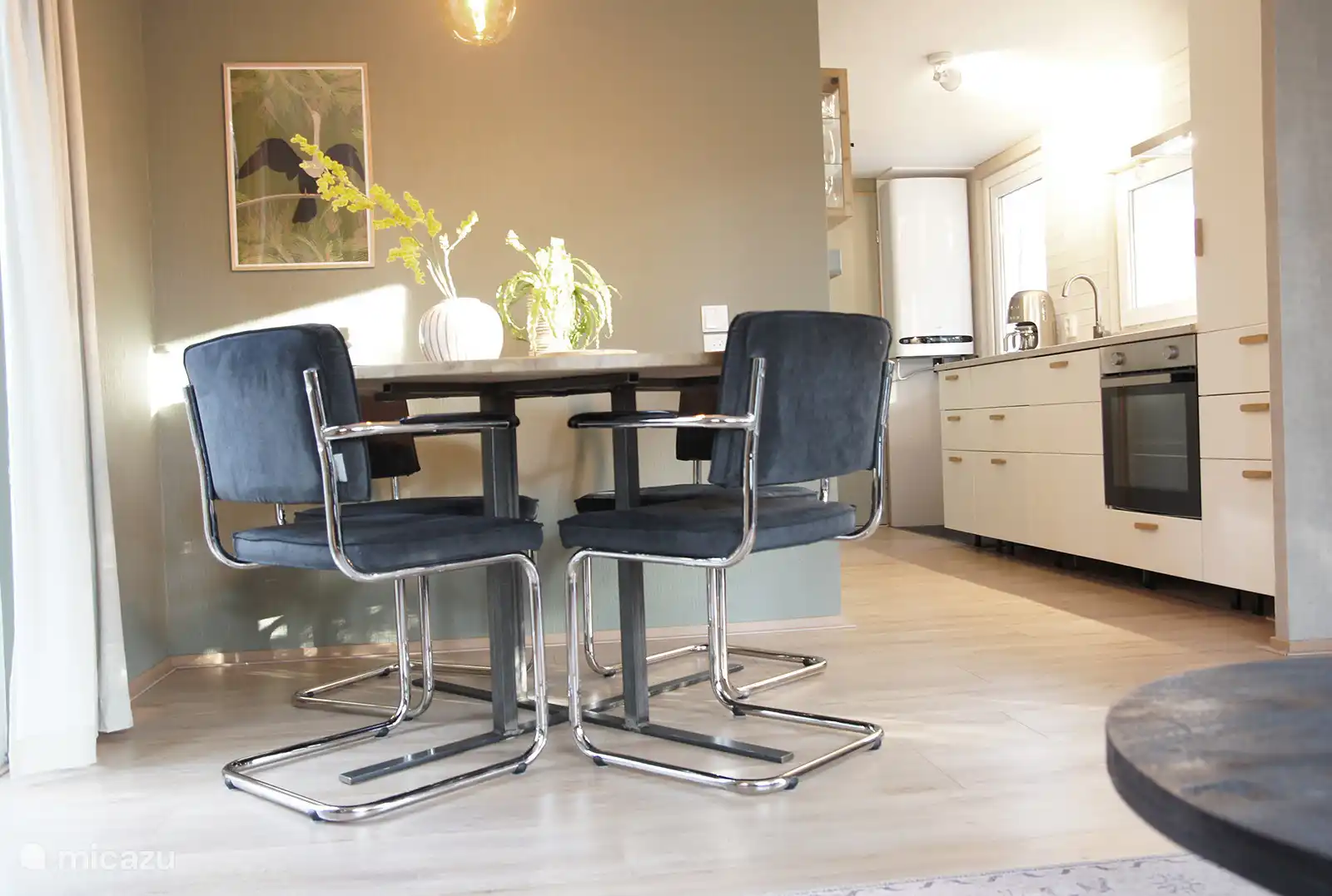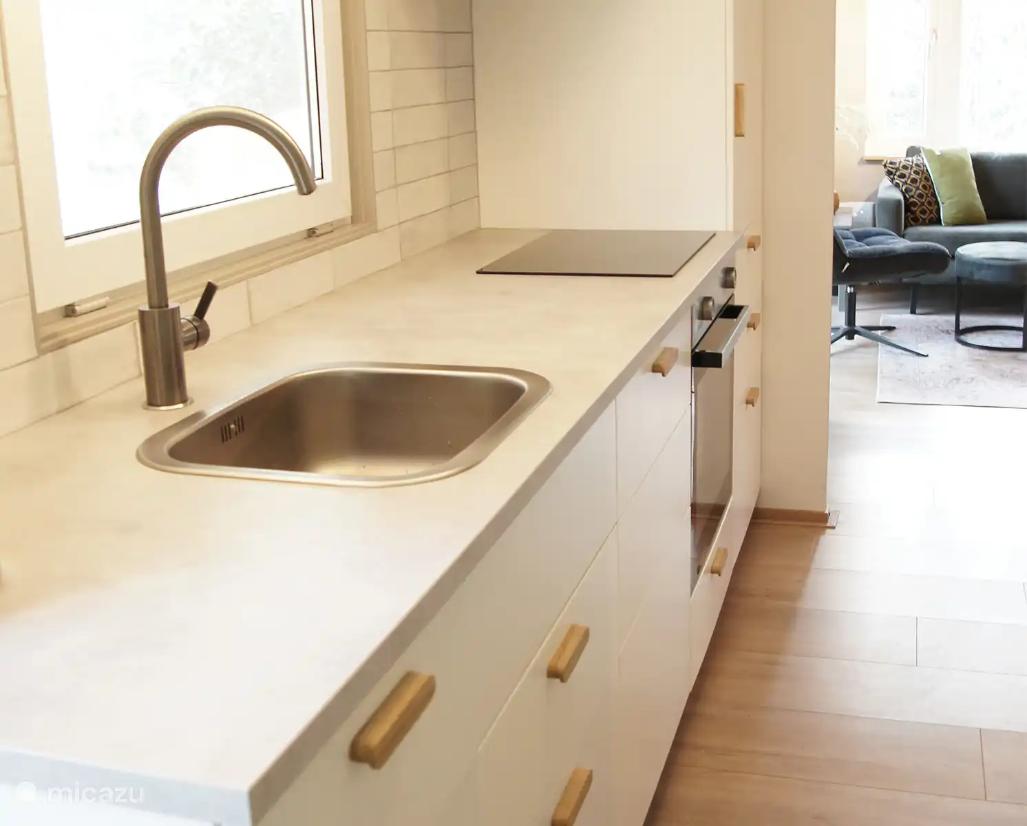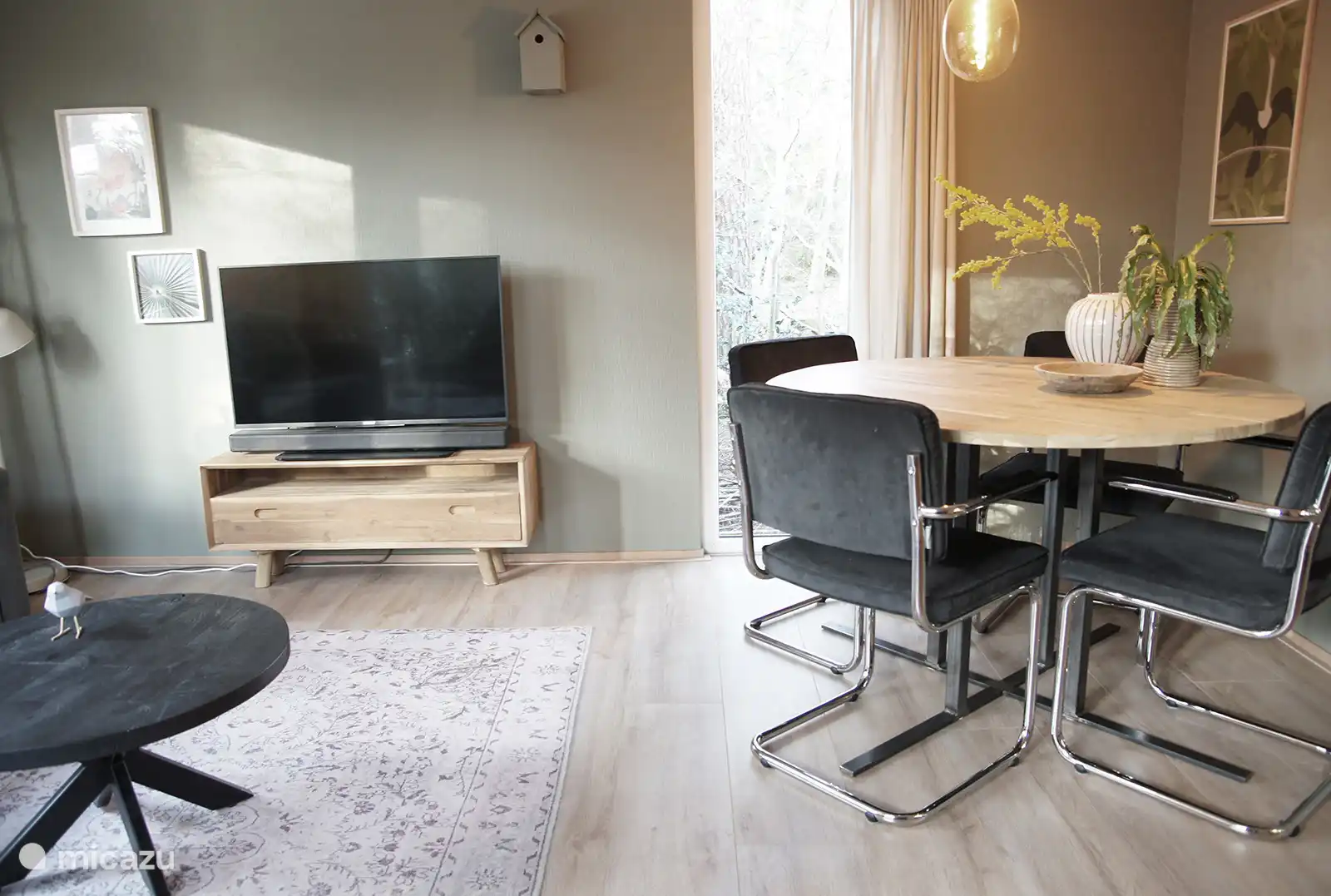 • Gezellige living comfortabele bank en eethoek (ronde tafel met 4 stoelen)