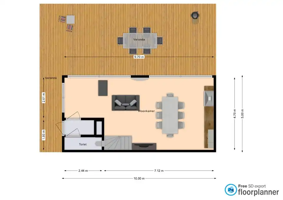 - Het terras en veranda bieden meer dan genoeg ruimte om heerlijk van de buitenlucht en het uitzicht op het water en het natuurgebied te genieten.