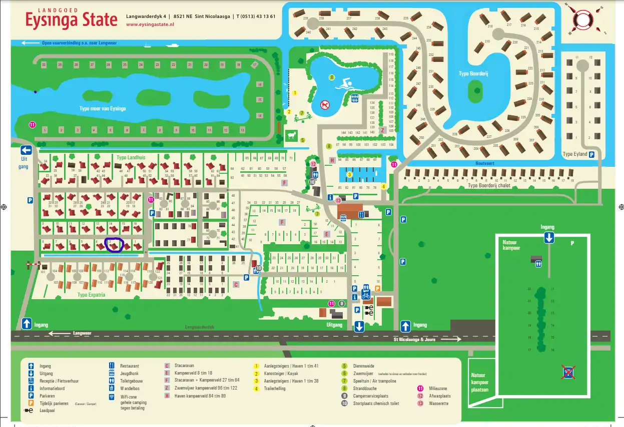 Op het park zelf is een grote zwemvijver, restaurant, terras, en speelweides aanwezig. En in de vakantie is er altijd animatie voor de kinderen.