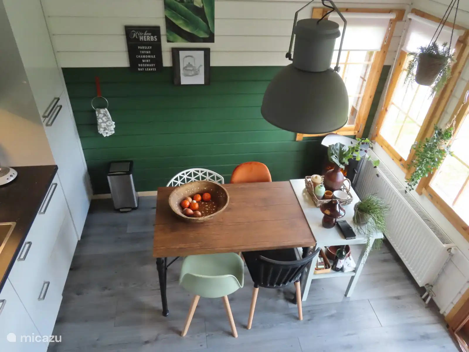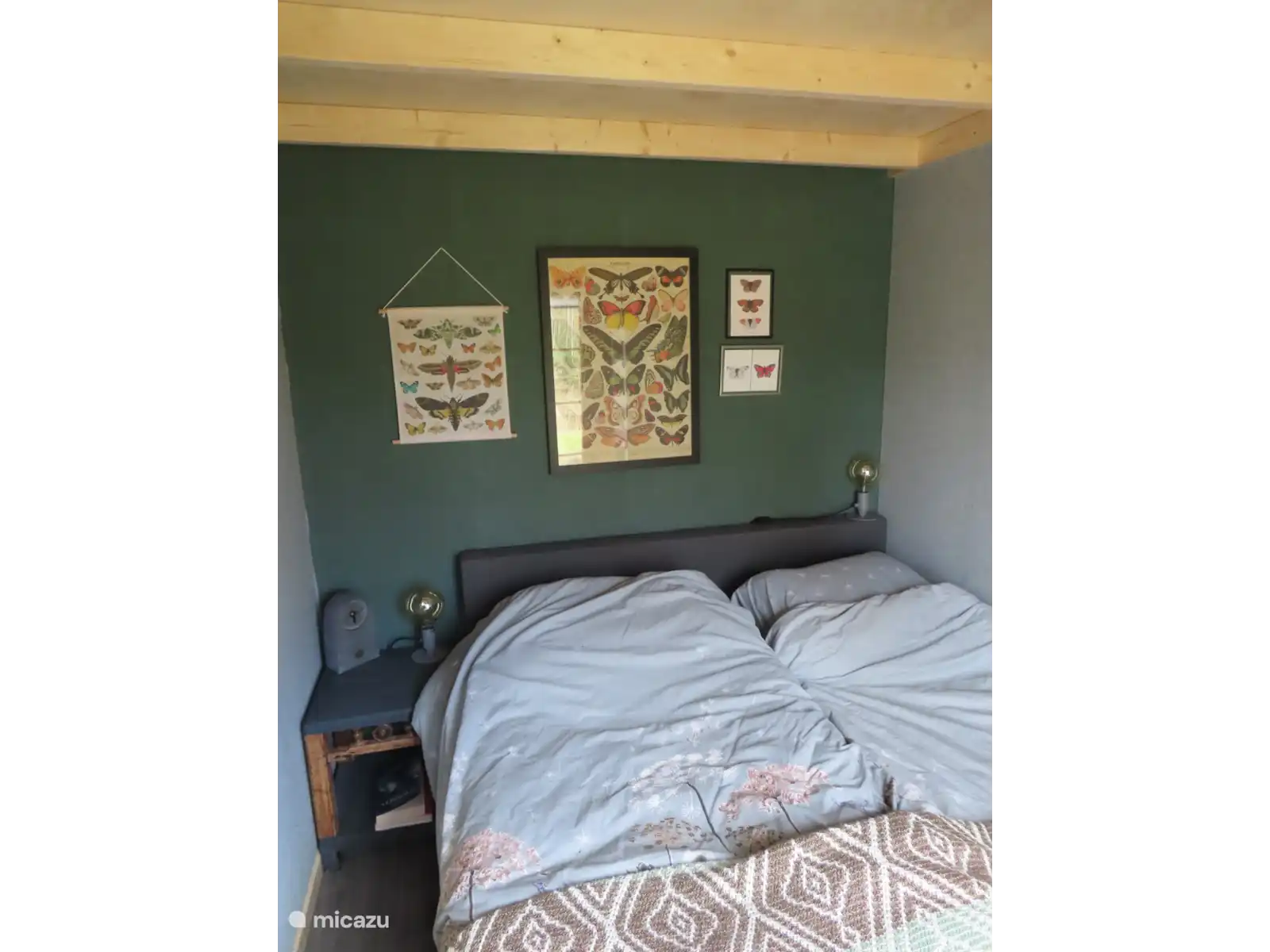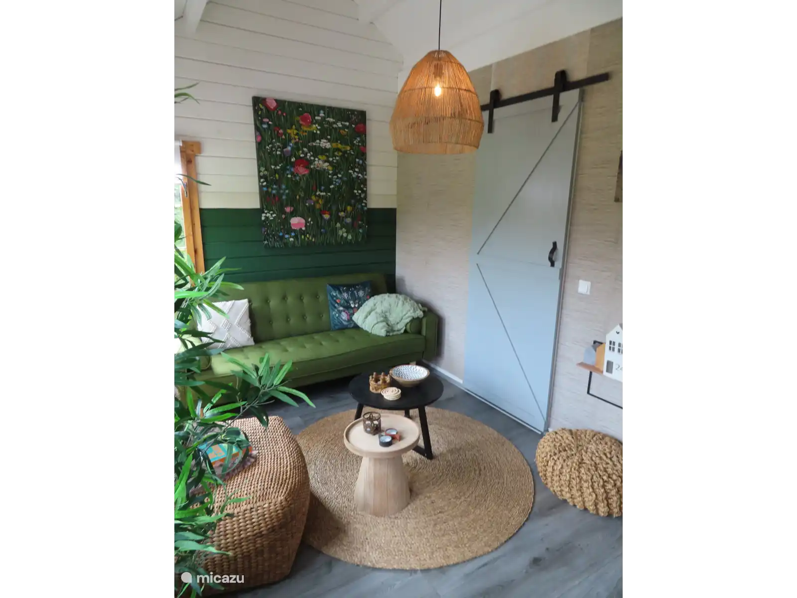 In de woonkeuken, zijn een vaatwasser, magnetron, oven en wasmachine/droger aanwezig. Er is 1 master-bedroom met een boxspring met fijne matrassen, met openslaande deuren en vrij uitzicht op de tuin en weiland. Verder is er een vide met een afsluitbaar hek met 2 goede matrassen. De woonkamer is net zoals de rest van het huis, zeer sfeervol ingericht met een electrische haard en tv met Netflix. De badkamer is modern met Regendouche, wastafel en toilet.
