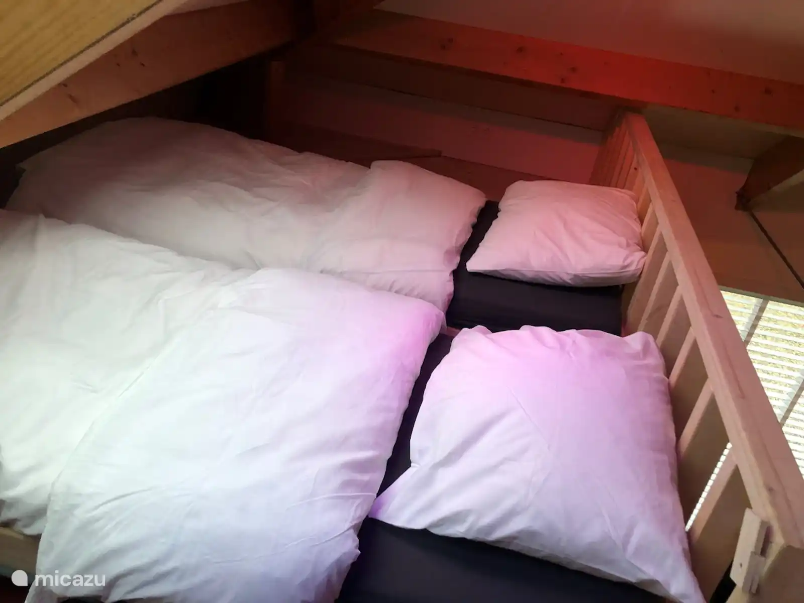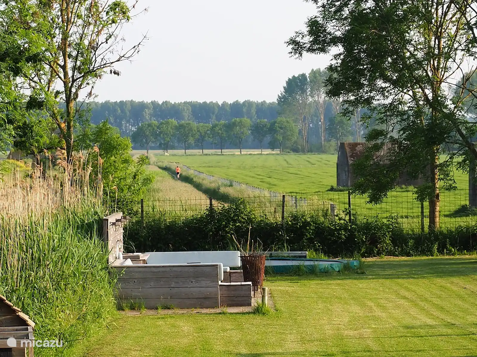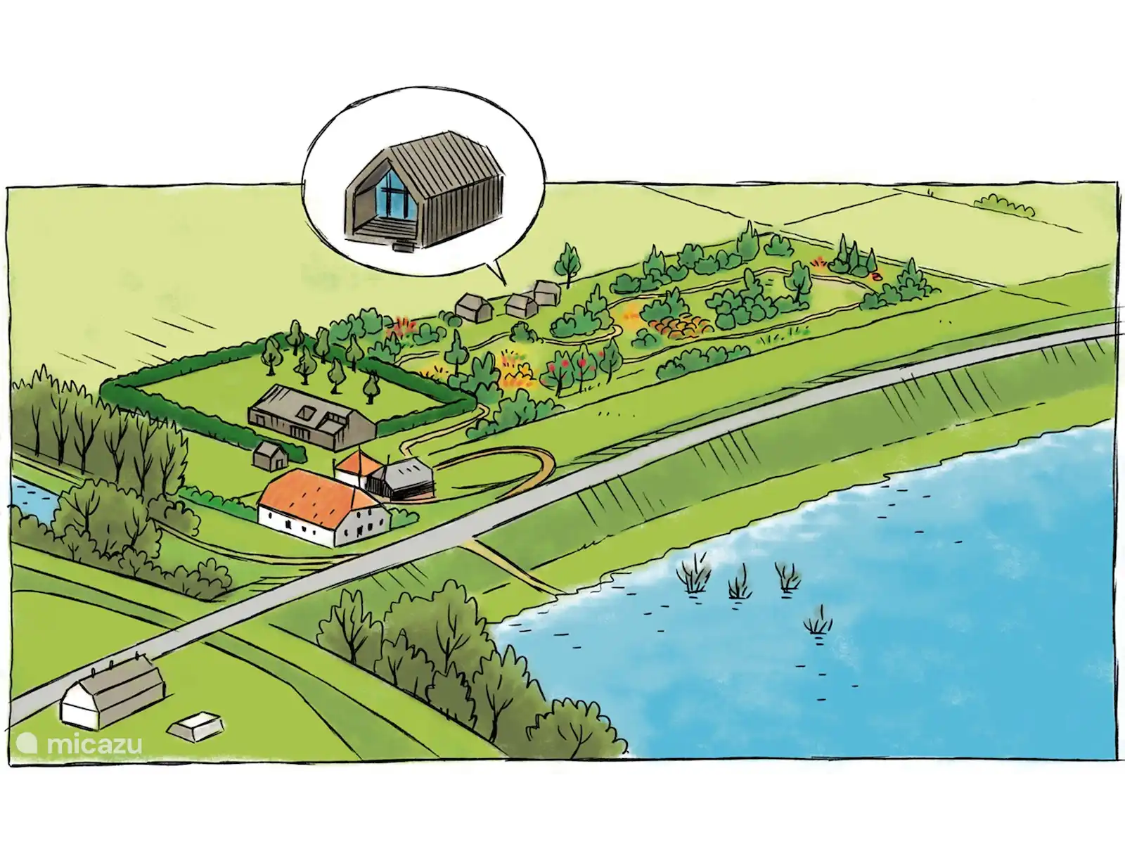 Je hebt voor de deur een eigen tuintje met allerlei stoeltjes, hangmat, buitenhaard annex pizzaoven en een kruidenhoek. Op het erf is een buitenkeuken met loungebank en sportveld waar je gebruik van kunt maken.