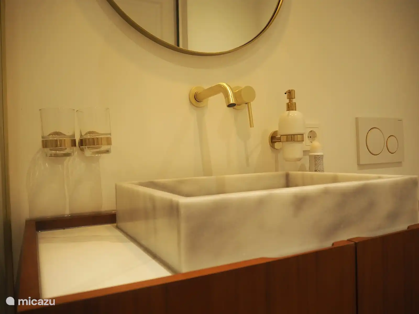 Je verblijft in een volledig uitgeruste voormalige opnieuw opgebouwde hooiberg met schitterende vergezichten. De sfeer is landelijk blingbling met zwart, marmer en goud.