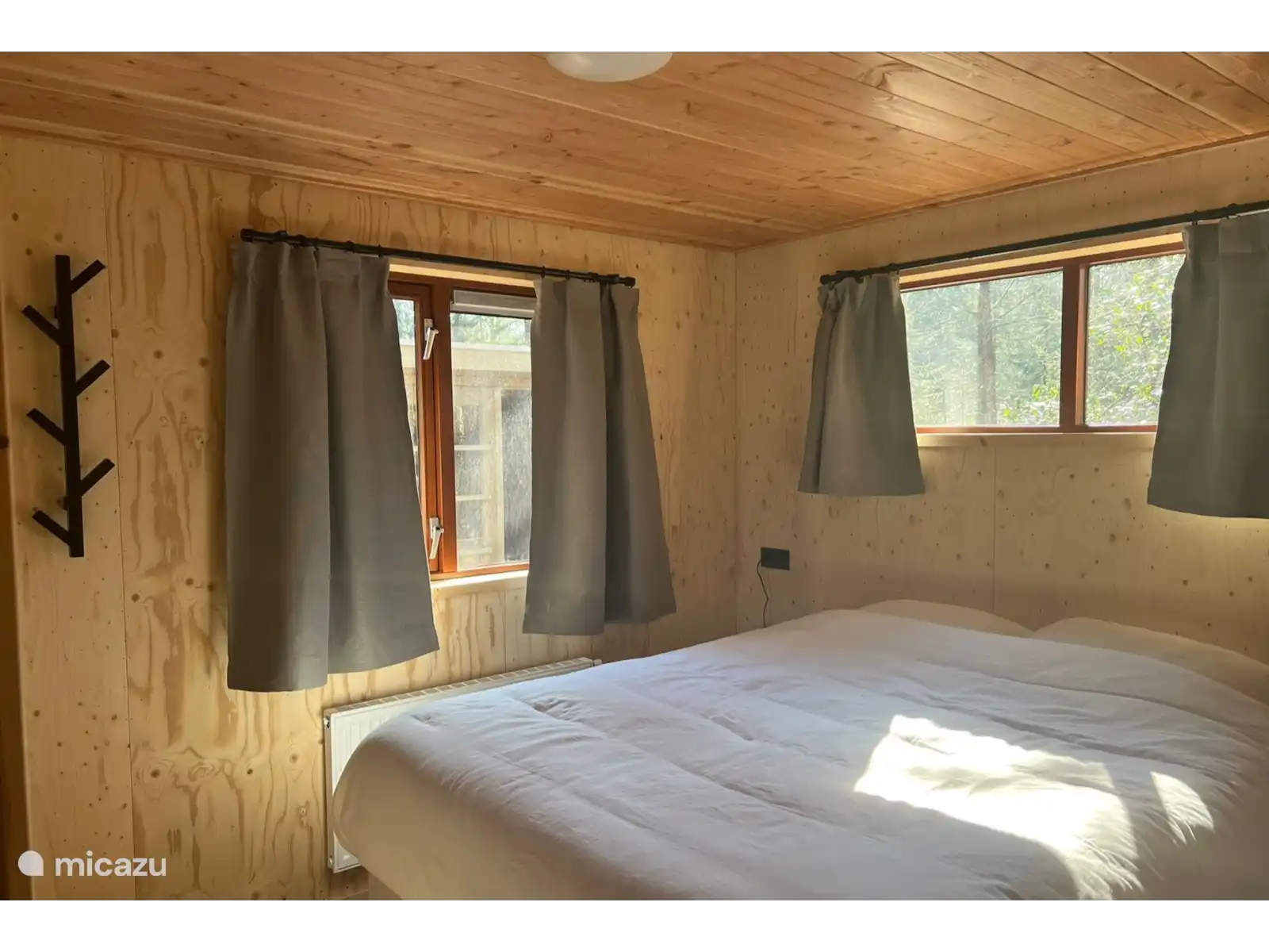 Het is een modern en nieuw chalet uit december 2022, opgetrokken uit Douglashout en heeft de ontspannen sfeer en houtgeur van een blokhut met veranda midden in het bos.