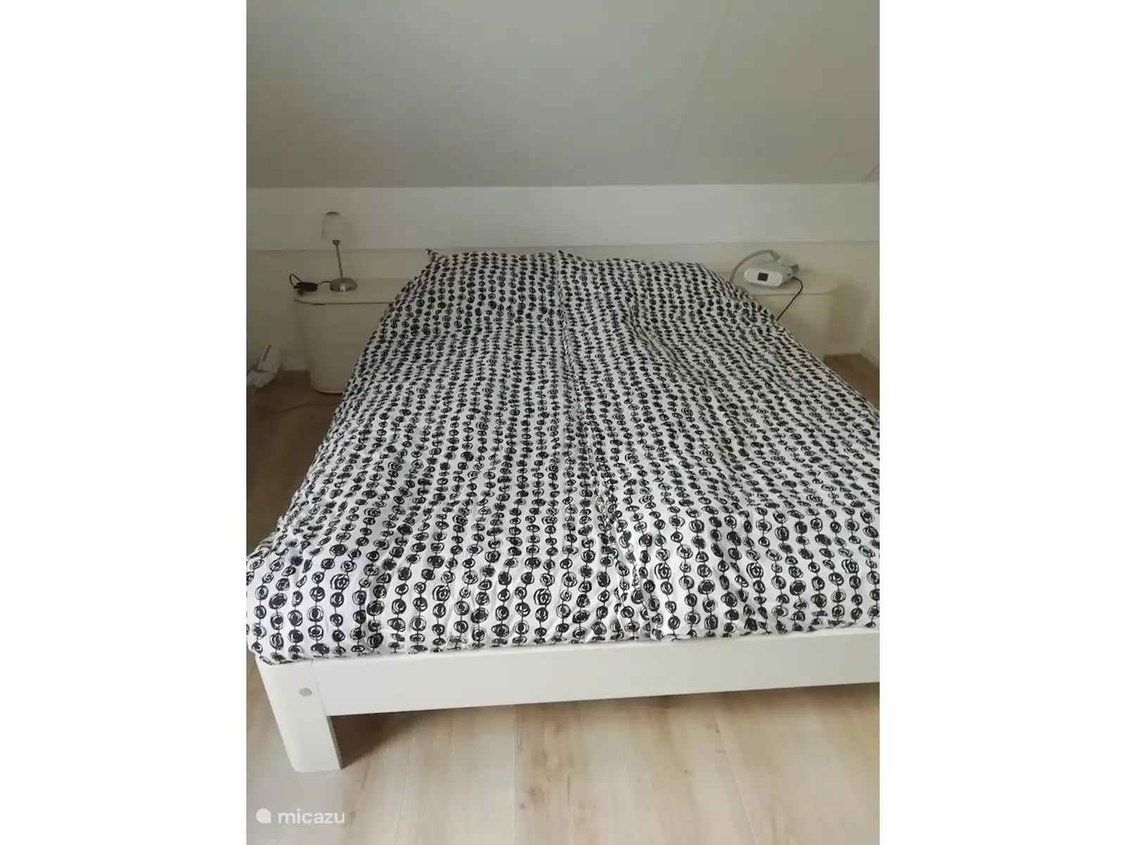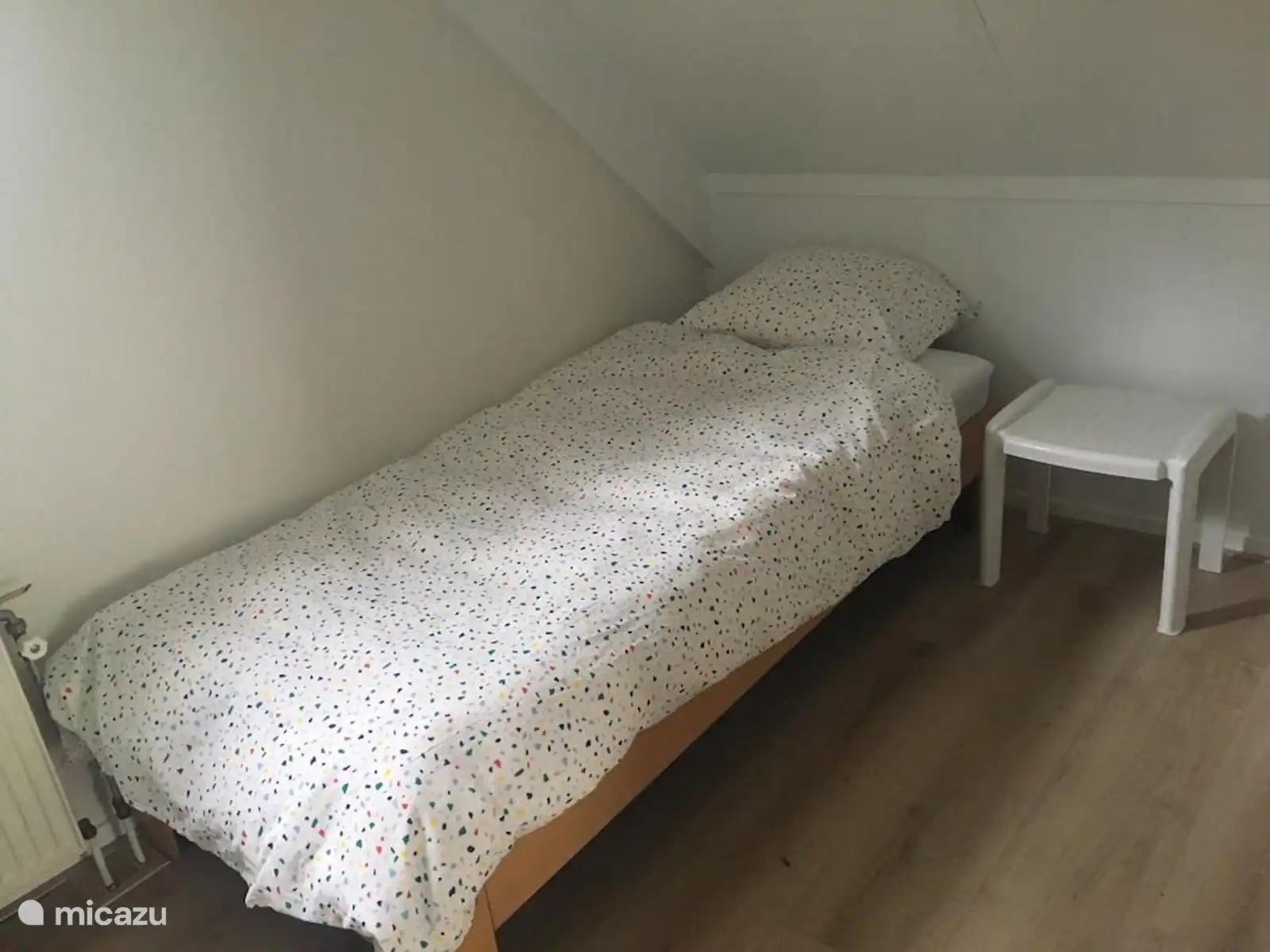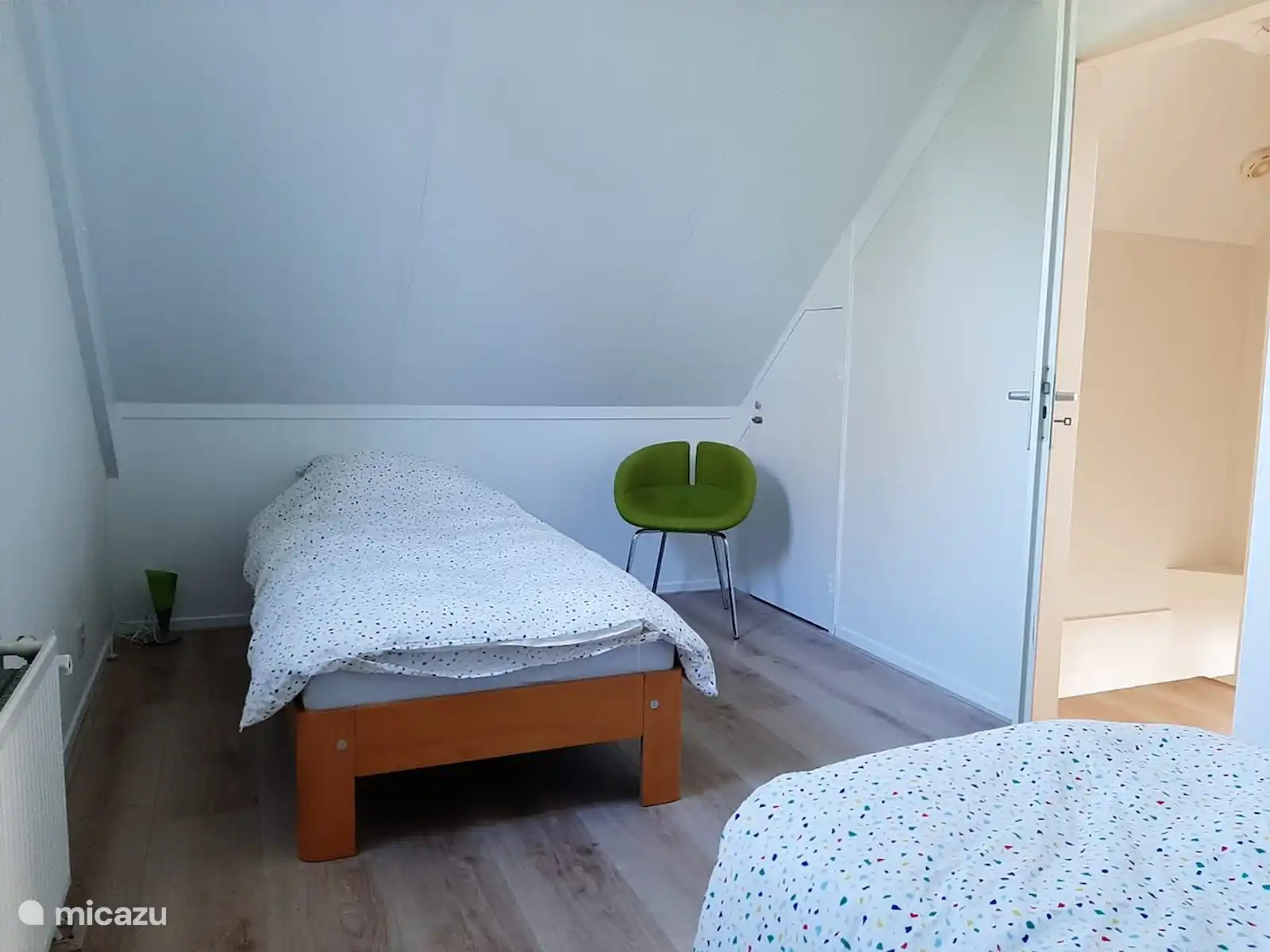 De twee slaapkamers bevinden zich op de eerste etage. Een kamer heeft 2 Auping eenpersoonsbedden (90x200) in de andere staat een 2 persoons Auping met 2 aparte matrassen (2x80x200).