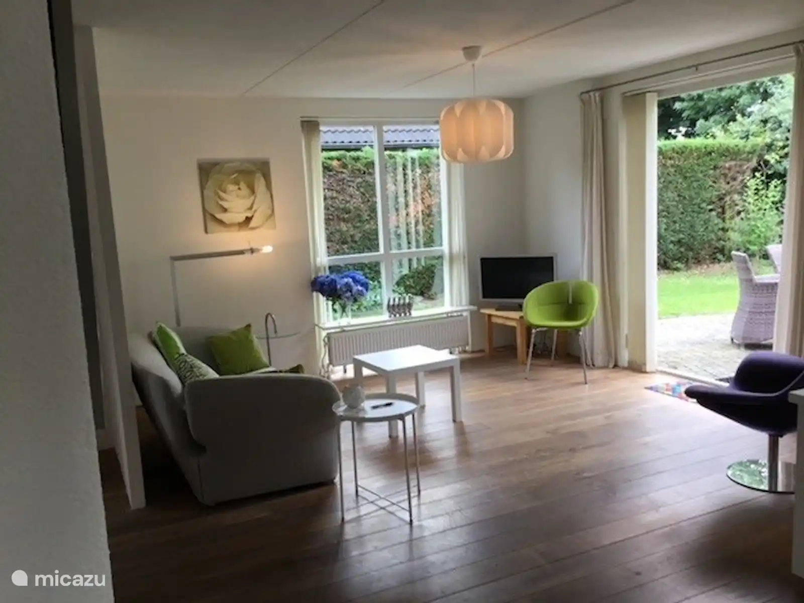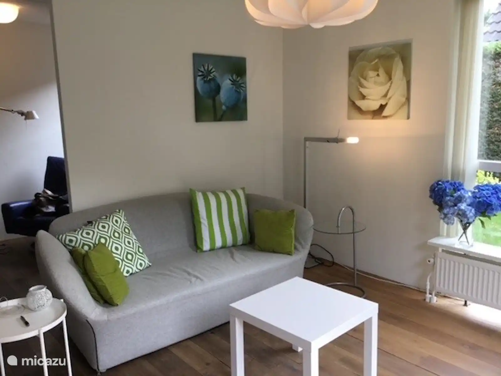 De woning is recent gerenoveerd. Het meubilair is modern design. Beneden hebben we een eikenhouten vloer, boven ligt eiken laminaat, hygiënisch en toch sfeervol.